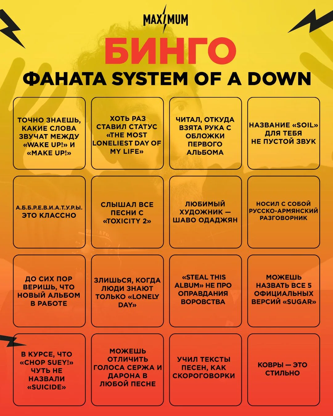 Барабанная дробь... по результатам второго голосования у нас в ТГ, новое БИНГО досталось поклонникам.. System of a Down 🔥