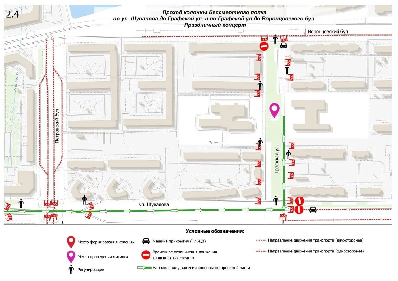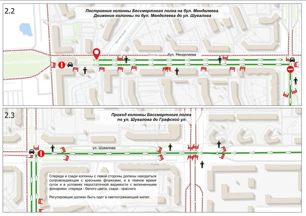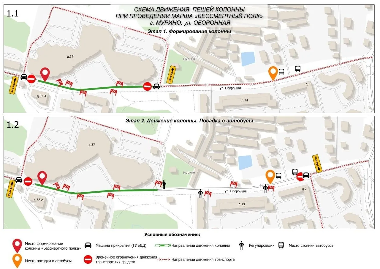 Утверждена схема перекрытия движения при проведении патриотического мероприятия «Бессмертный полк» на территории муниципального образования «Муринское городского поселение» Всеволожского муниципального района Ленинградской области.