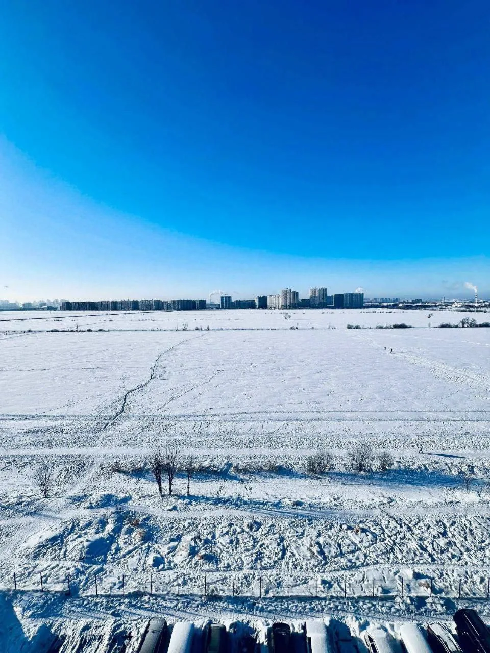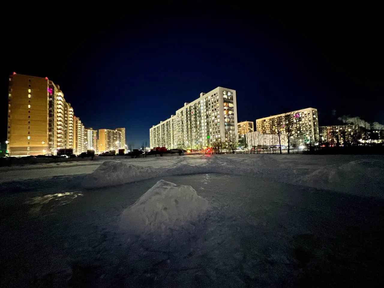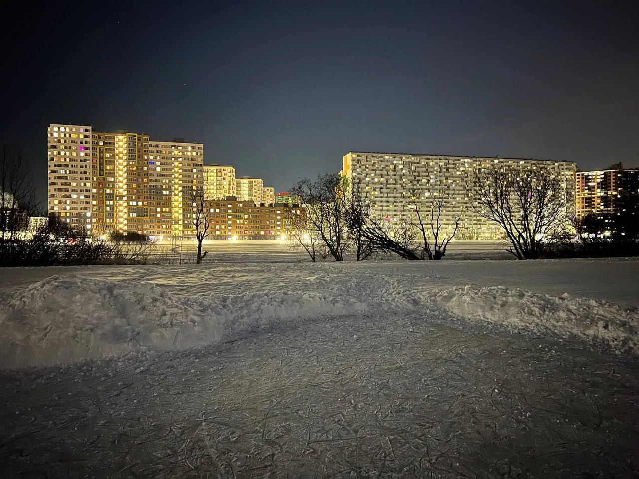 Посреди поля расчистили небольшой каток. Теперь можно бесплатно кататься на коньках, рядом с домом. Удобное место для активного отдыха прямо под окнами радует и детей, и взрослых, даря радость зимних развлечений в шаговой доступности.