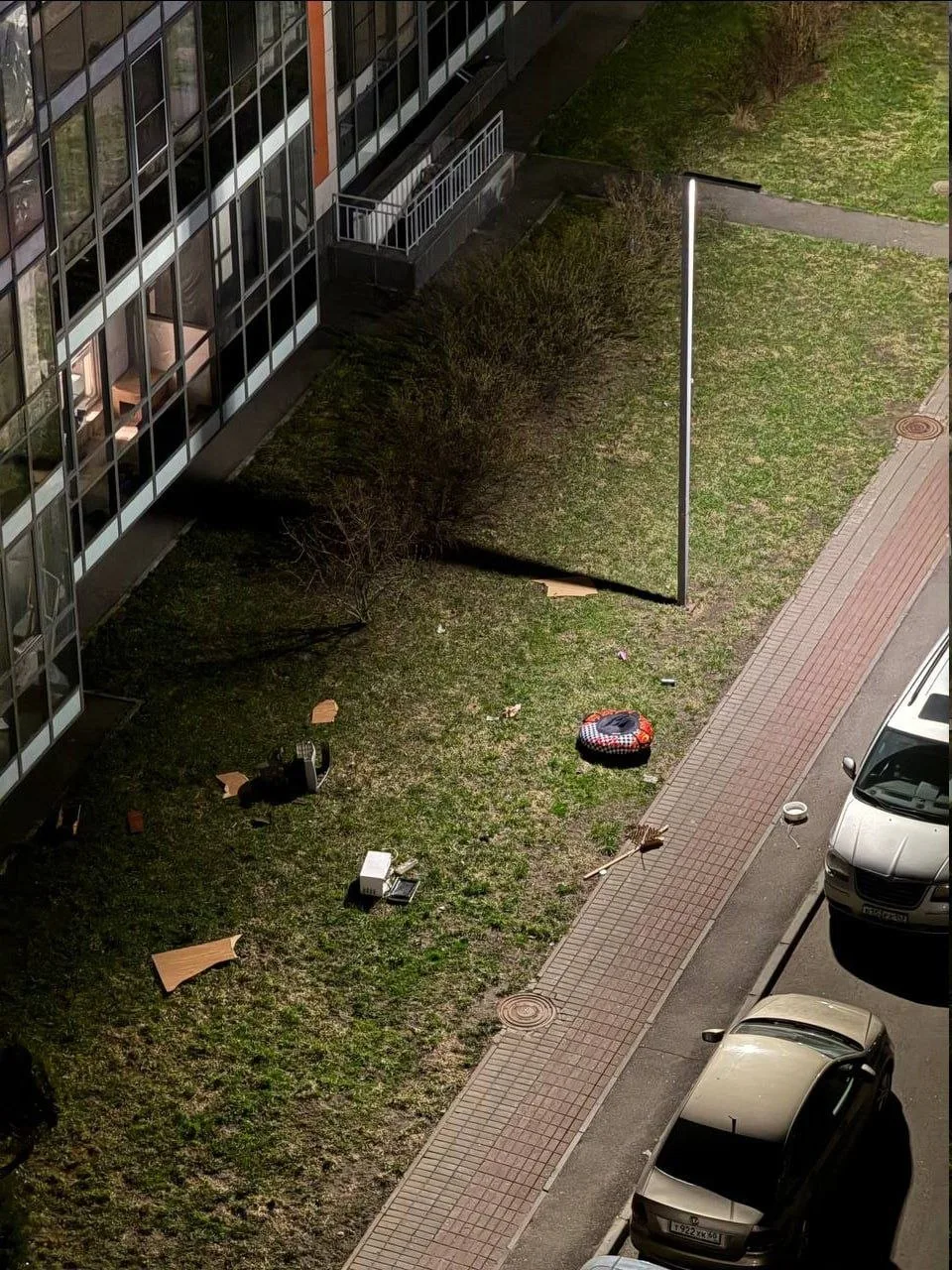 С окна падают микроволновки, телевизоры и тюбинги. Местные жители решили не заморачиваються с выносом мусора - выкидывают всё из окон.