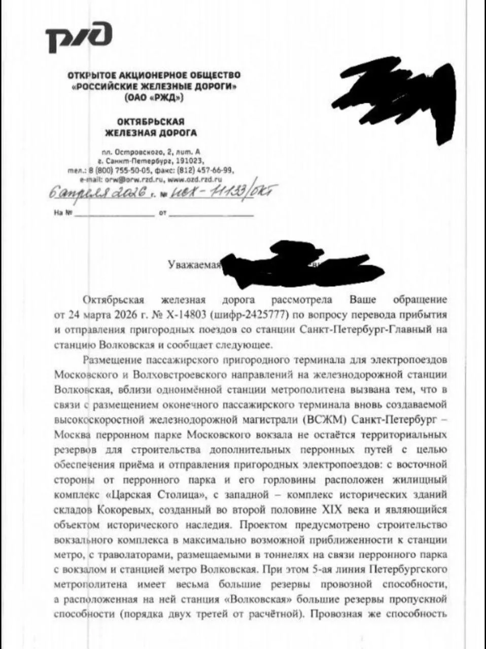 «Перевод прибытия и отправления пригородных поездов со станции Санкт-Петербург-Главный на станцию Рыбацкое и Ладожский вокзал планируется в июле 2026 года, на Волковскую — после завершения строительно-монтажных работ по реконструкции станции Волковская»