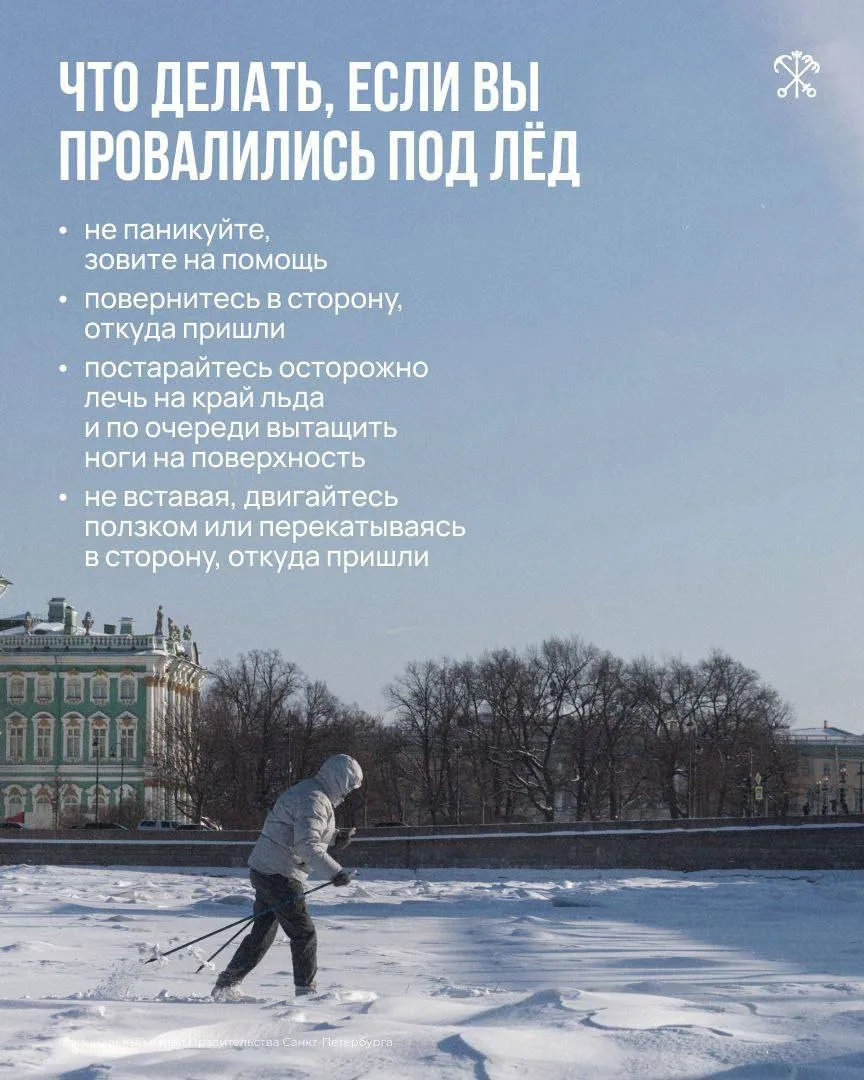 ✉МЧС Петербурга призывает жителей и гостей города не выходить на лёд водоёмов.