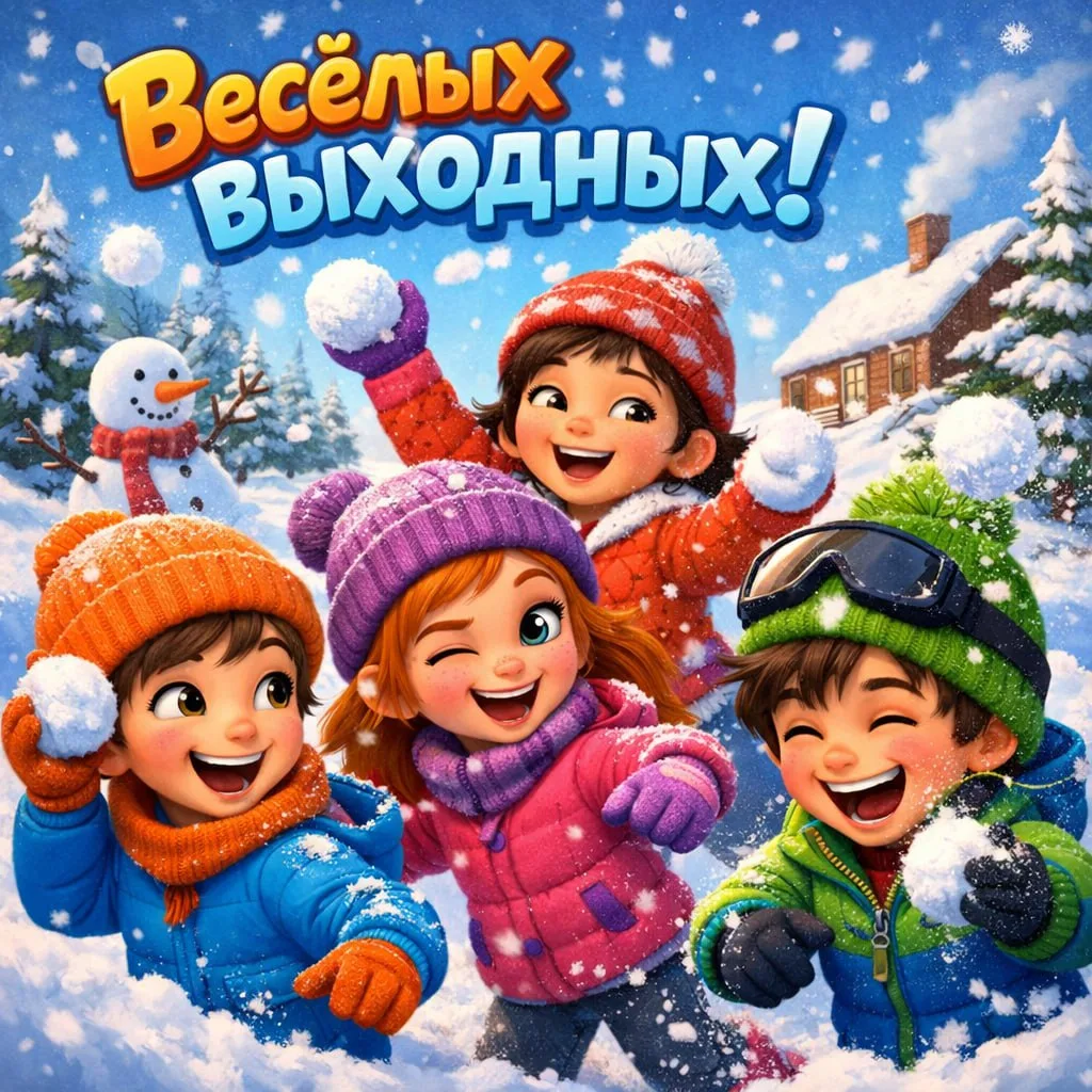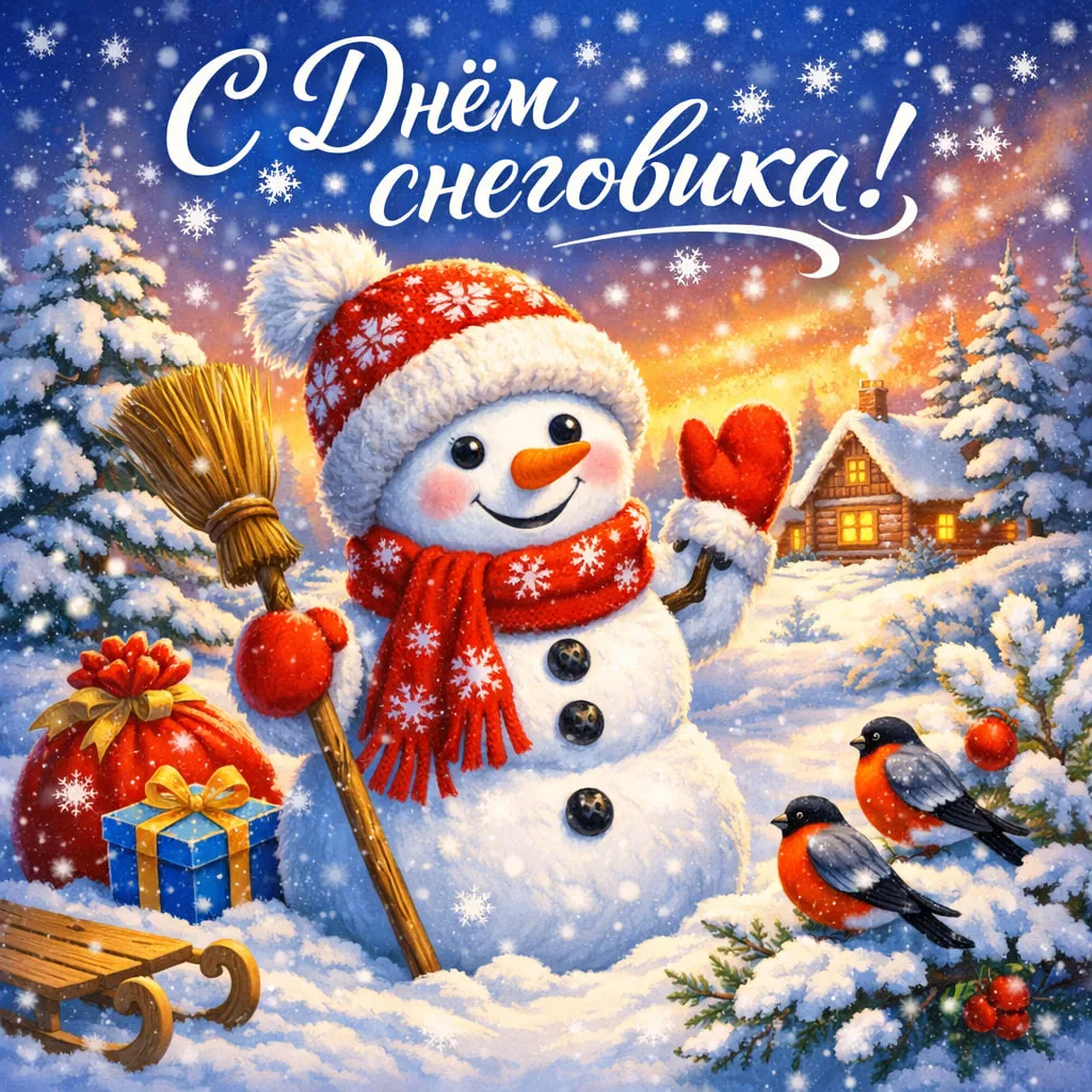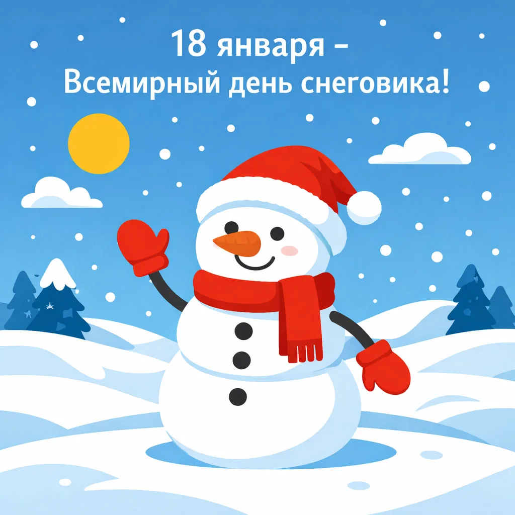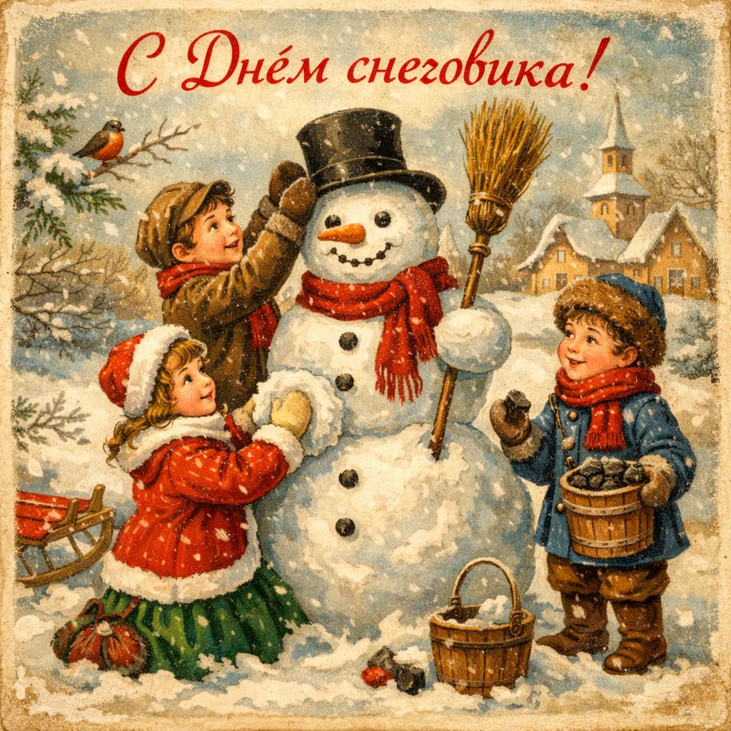 Обязательно слепите снеговика и отправьте весёлую открытку 🙂