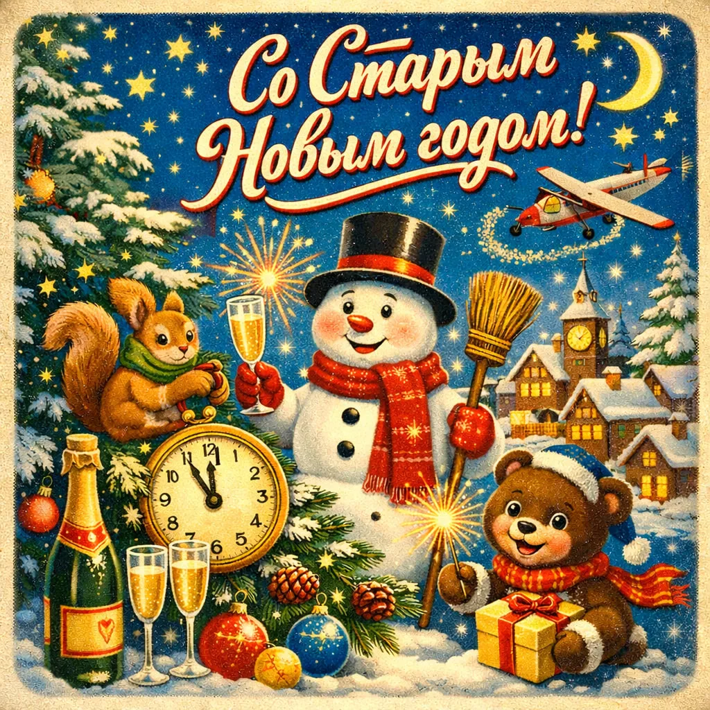 Отличным подарком на Старый Новый год станет яркая открытка ❄️