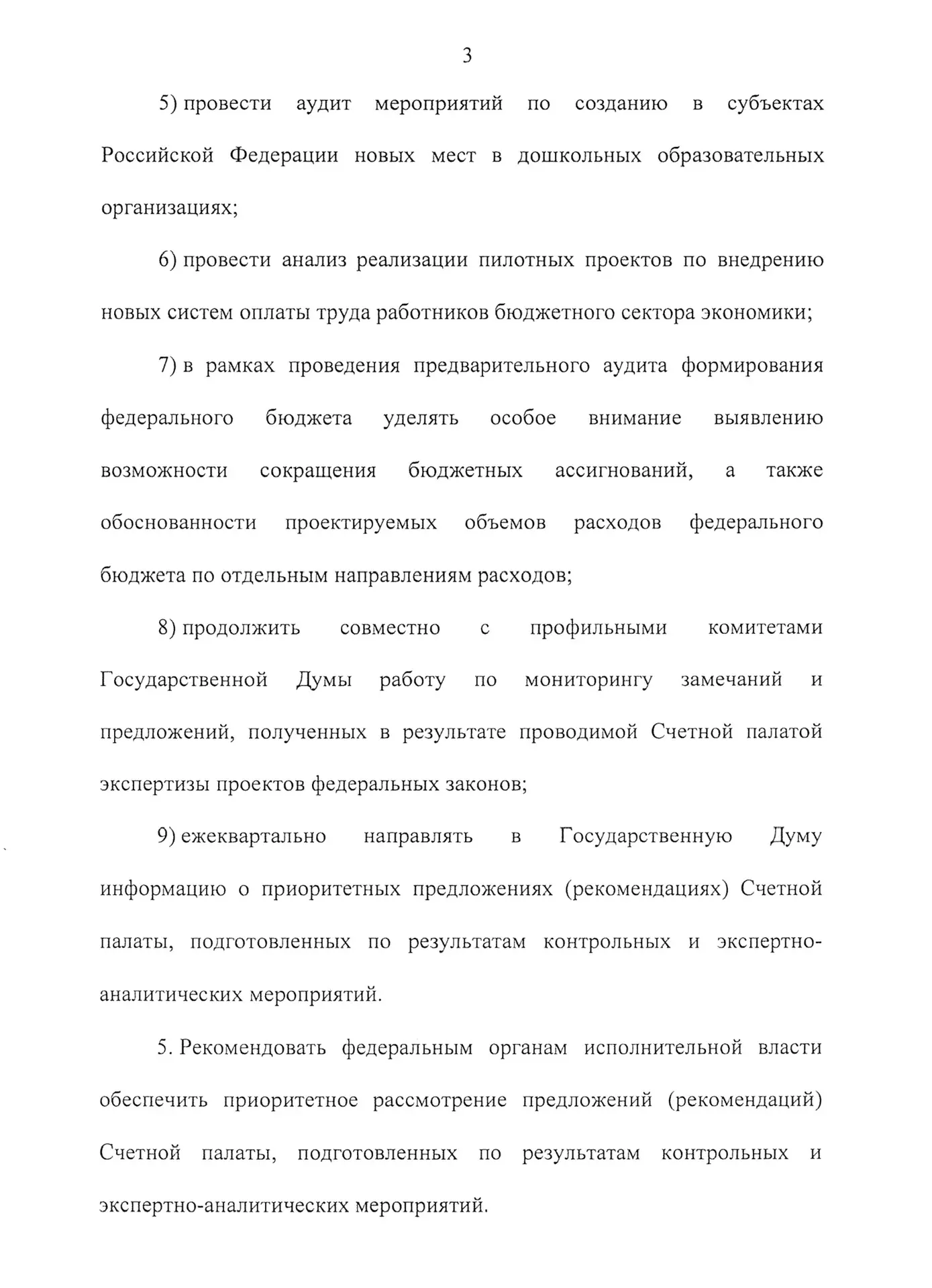 В части бюджетного процесса Счётной палате предлагается усиливать предварительный аудит: выявлять возможности сокращения бюджетных ассигнований и оценивать обоснованность планируемых расходов. А федеральным органам исполнительной власти фактически дано указание рассматривать предложения Счётной палаты в приоритетном порядке, что должно повысить их практическую реализуемость.