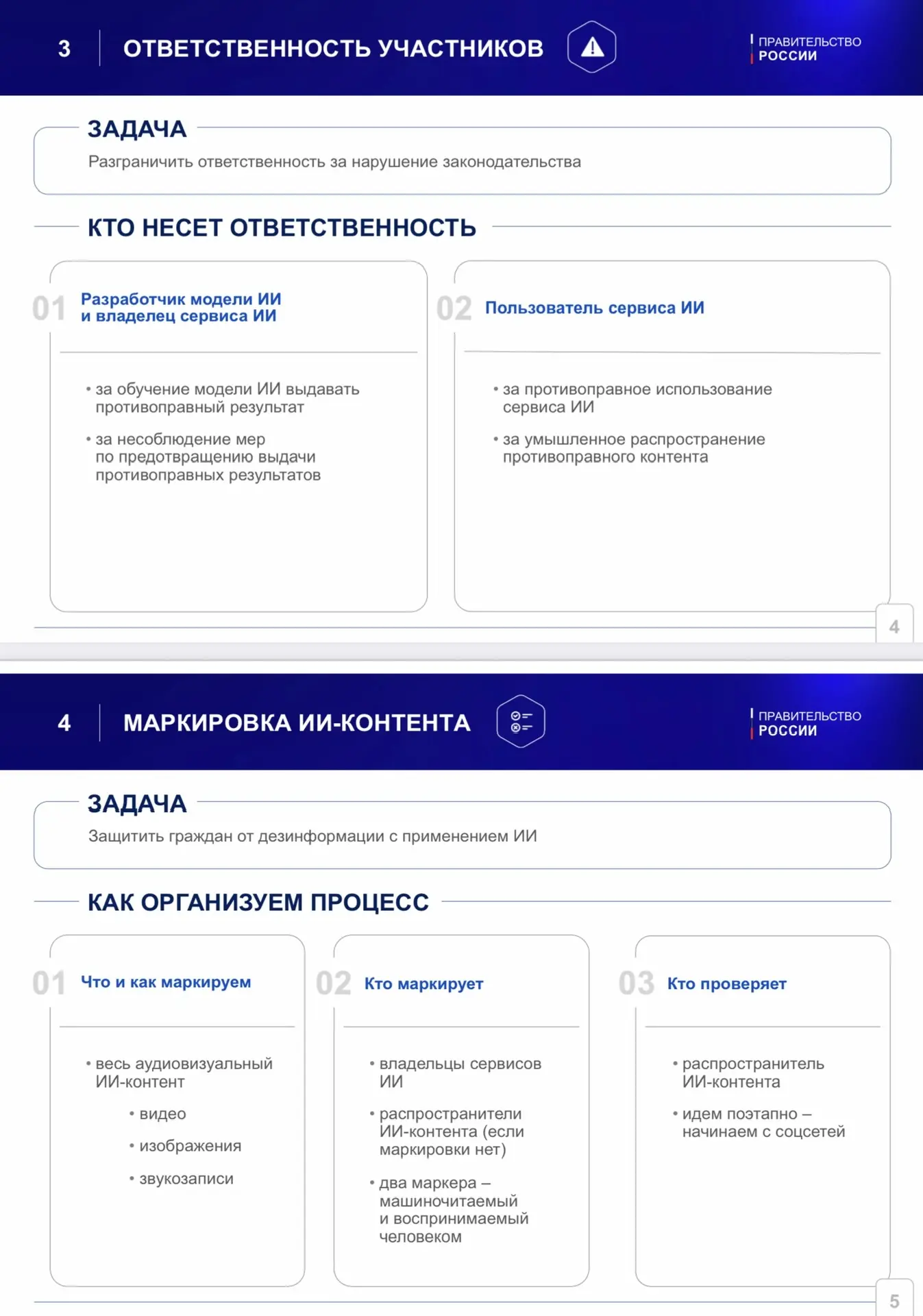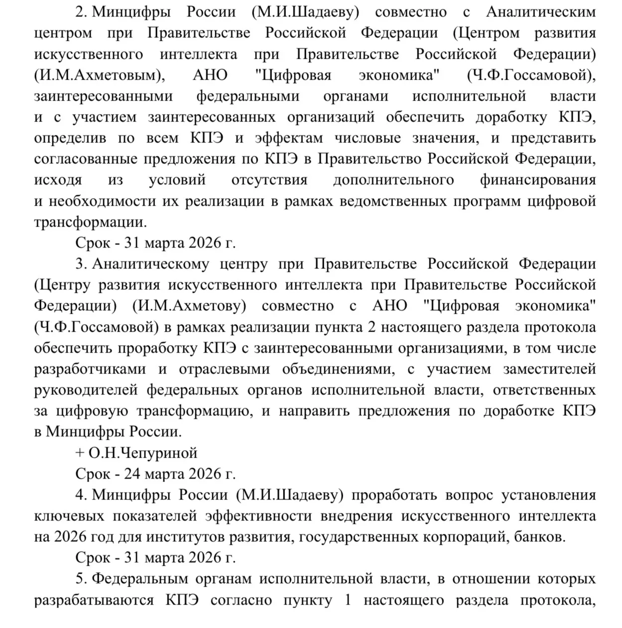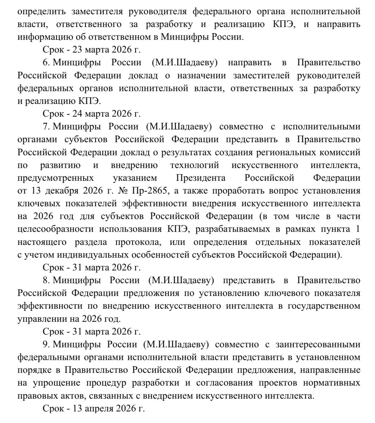 Одновременно закрепляется персональная ответственность за эту повестку. В каждом госоргане назначается заместитель руководителя, курирующий внедрение ИИ, данные о назначениях передаются в Минцифры и сводятся в общий доклад для Правительства.
