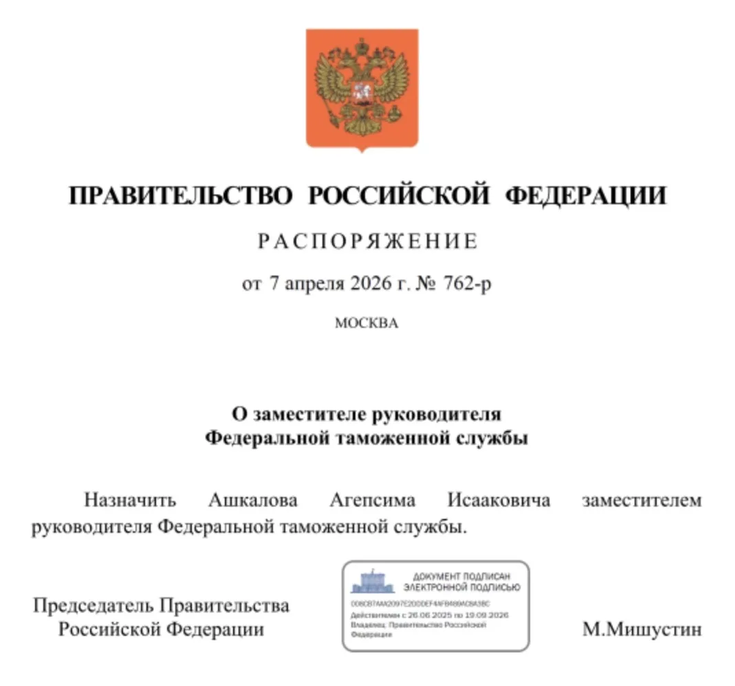 💼 Заместителем руководителя Федеральной таможенной службы назначен Агепсим Ашкалов. Последний год он трудился в ФТС России начальником главного управления таможенного контроля после выпуска товаров, а до этого — последовательно возглавлял Северо-Кавказское и Приволжское таможенные управления.