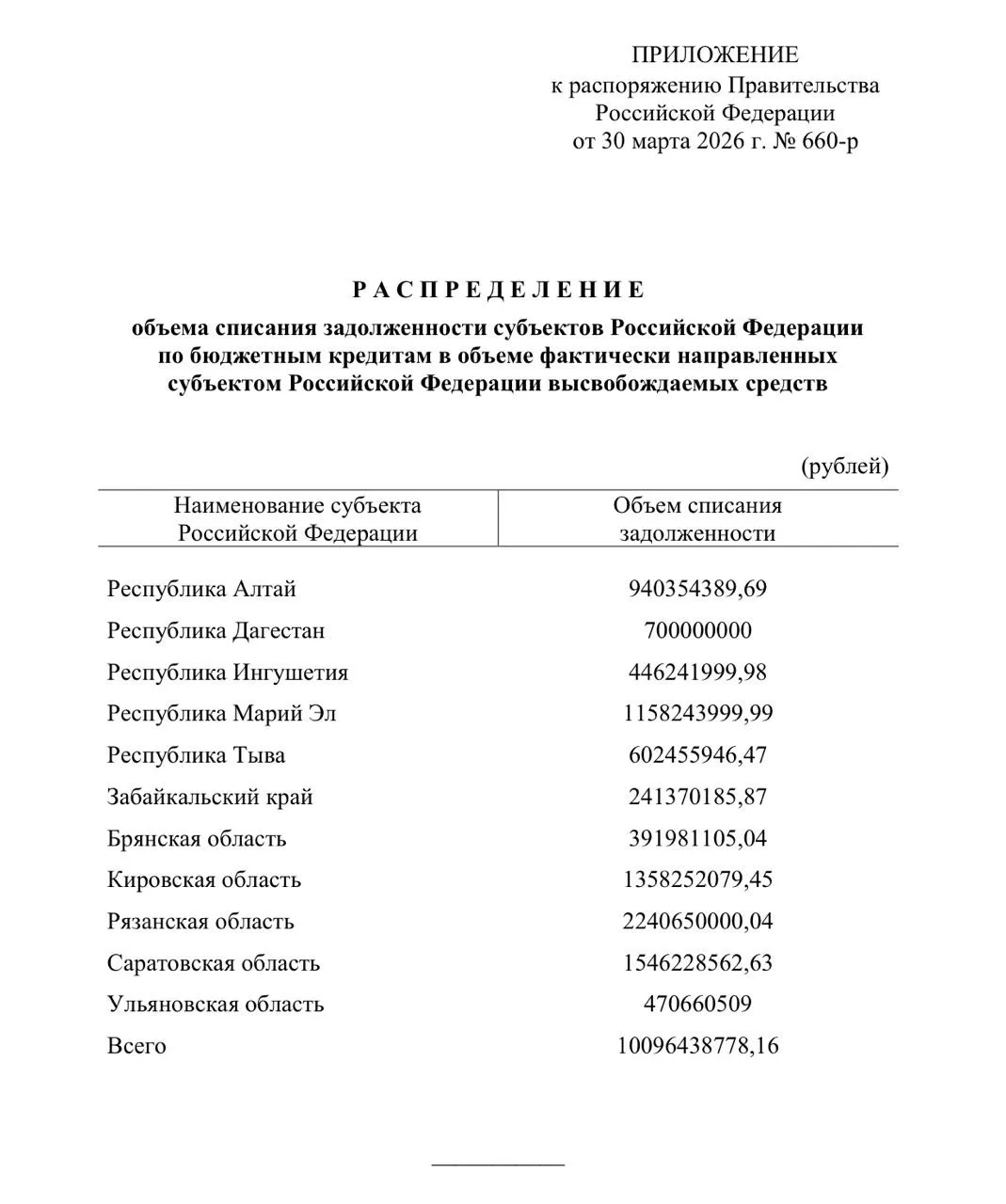 Наибольший объём списания пришёлся на Рязанскую область — 2,24 млрд рублей. Далее следуют Саратовская (1,54 млрд) и Кировская (1,36 млрд) области, а также Марий Эл (1,16 млрд). В диапазоне до миллиарда — республики Алтай (940 млн), Дагестан (700 млн) и Тыва (602 млн), Ульяновская область (471 млн), Ингушетия (446 млн). Минимальные объёмы приходятся на Брянскую область (392 млн) и Забайкальский край (241 млн).