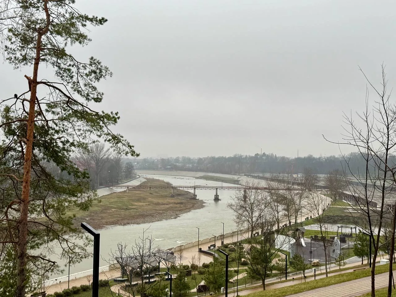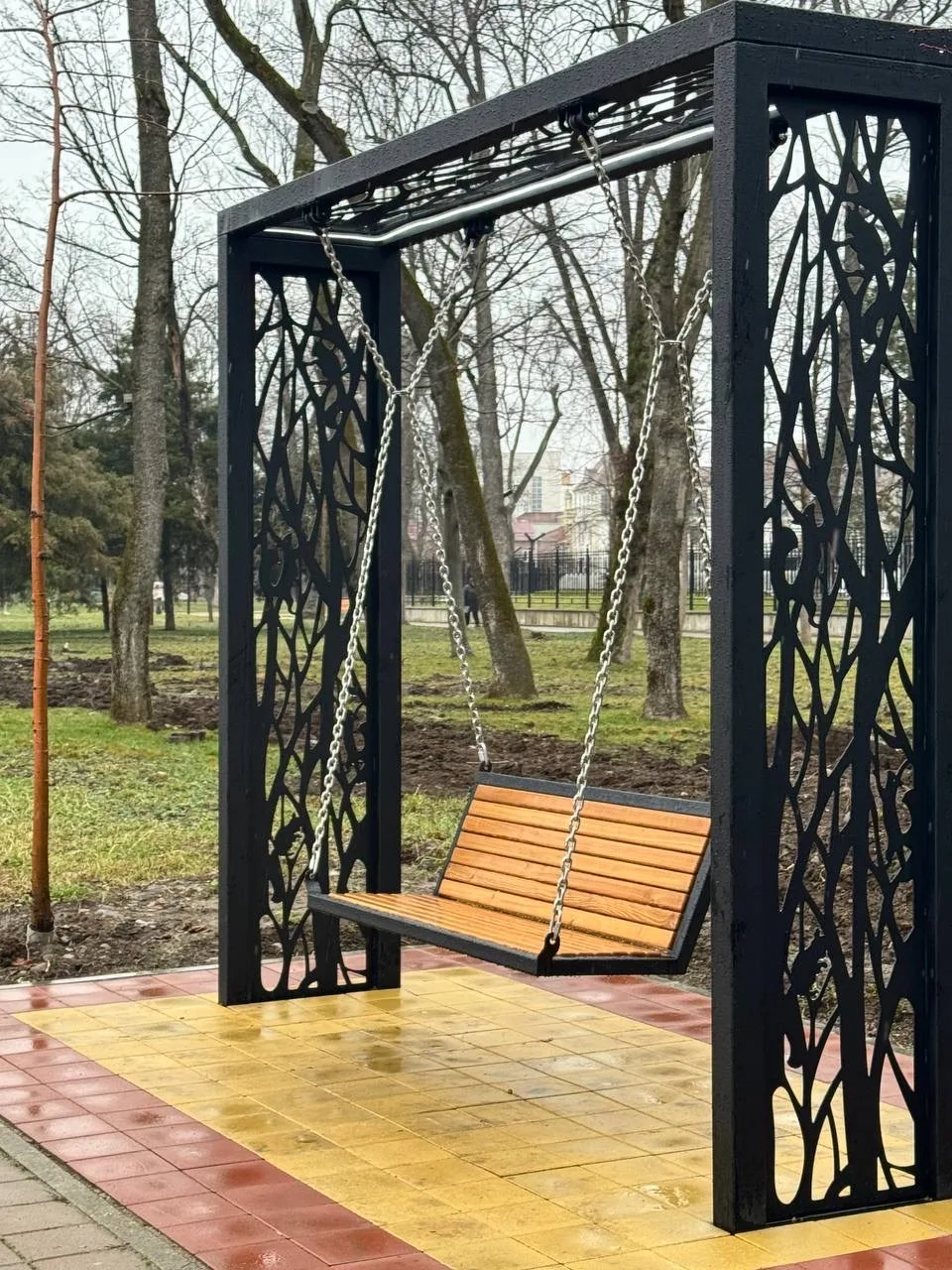 При выборе места расположения качелей решающую роль сыграла открывающаяся панорама на набережную реки Белая.