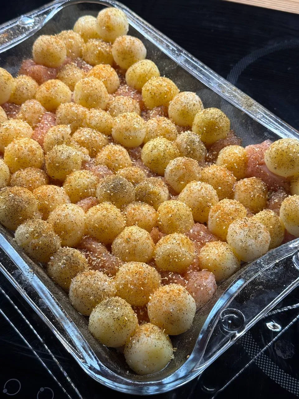 Молодая картошка (перед запеканием я ее варю до готовности, либо вареную в вакууме покупаю)