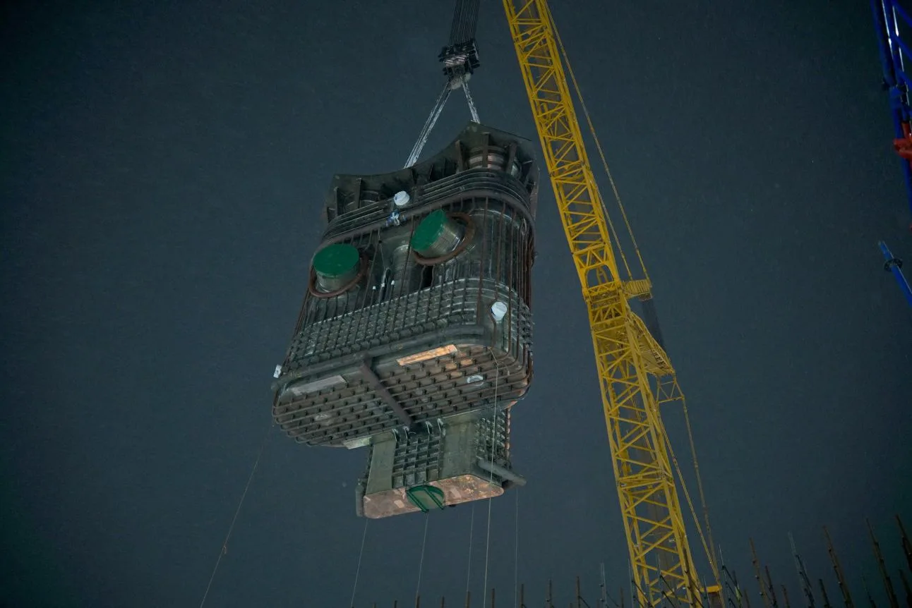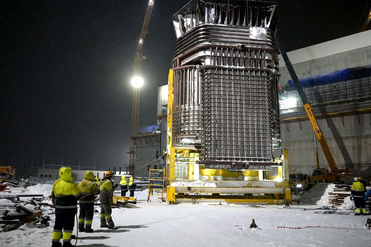 В Северске, на площадке опытно-демонстрационного энергокомплекса IV поколения, продолжается реализация проекта «Прорыв» по созданию уникальной технологии замкнутого ядерного цикла. Началась установка в шахту реактора четырёх металлических оболочек периферийной полости блока реактора.