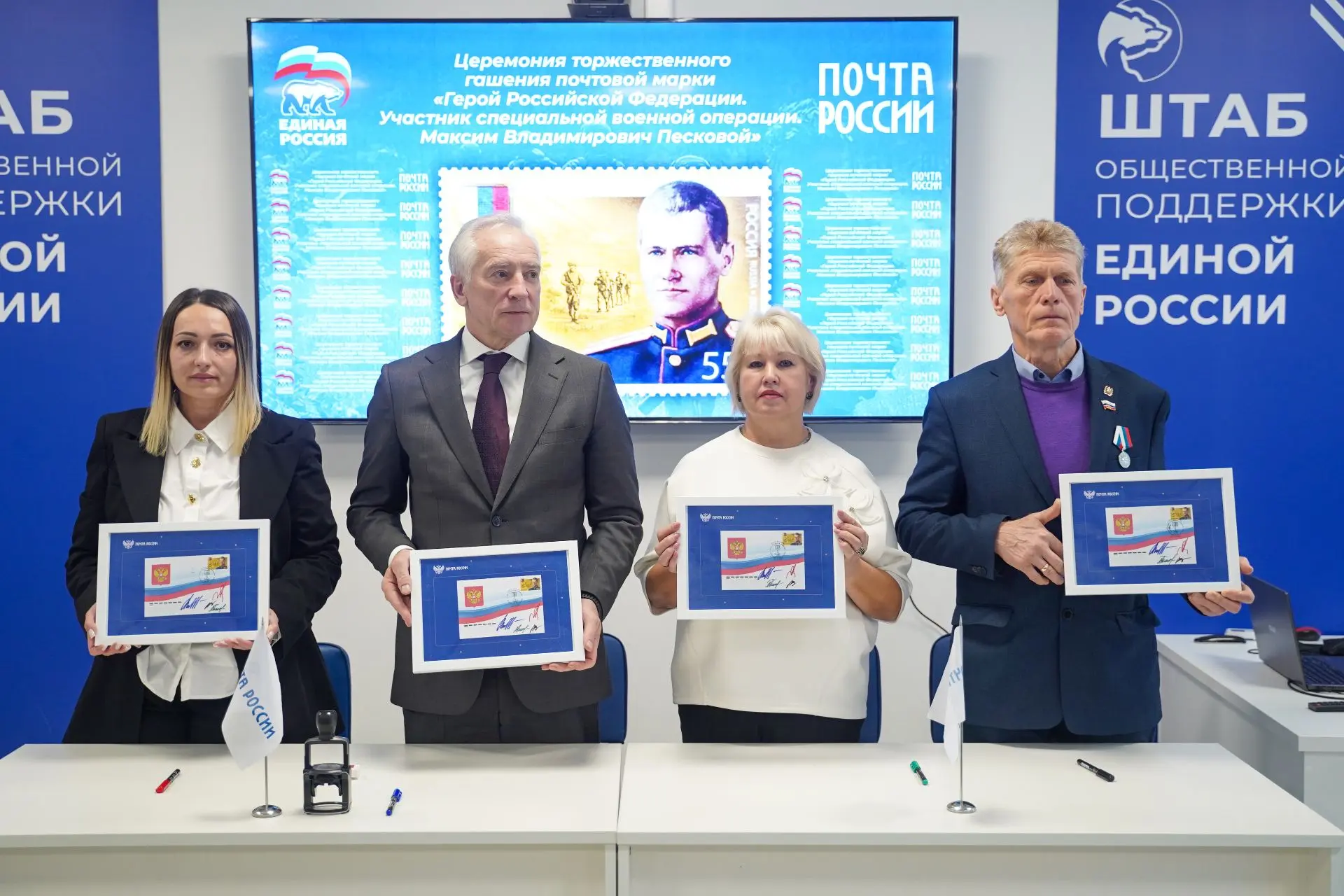Для церемонии «Почта России» выпустила специальный конверт и художественный штемпель. Новая марка вышла тиражом 37,5 тысячи экземпляров и продолжила большую серию «Герои России», которую «Почта России» выпускает уже несколько лет.