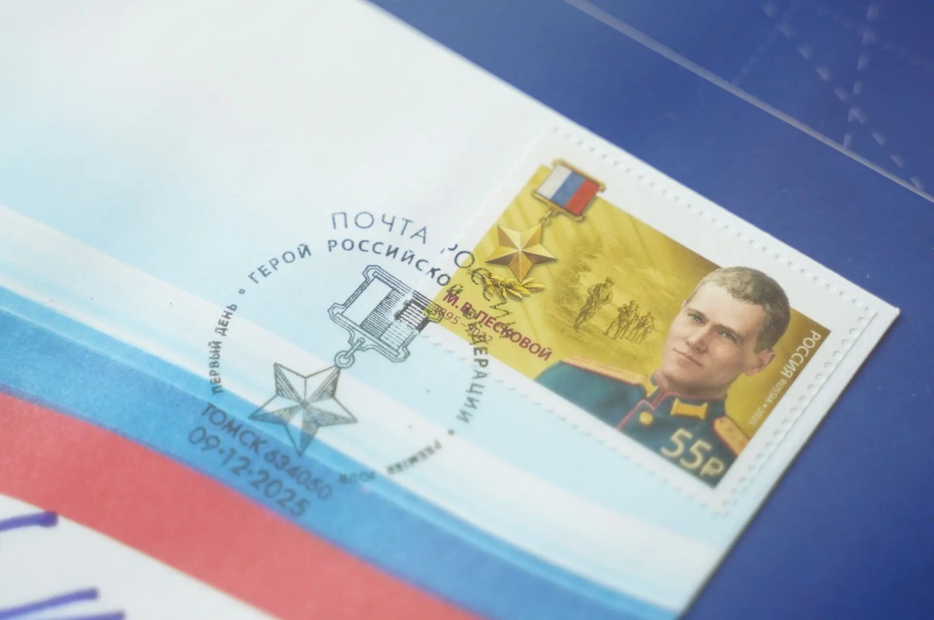 В честь Дня героев Отечества «Почта России» выпустила марку с Героем России, томичом Максимом Песковым.