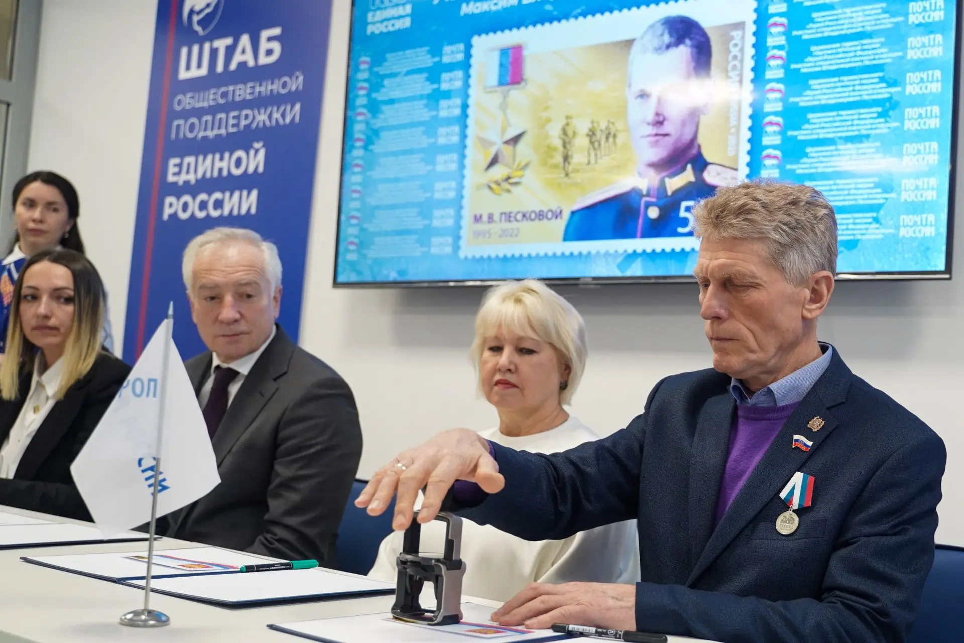 Вместе с родителями Героя, Еленой Александровной и Владимиром Вячеславовичем, принял участие в церемонии гашения марки, которая прошла в Штабе общественной поддержки партии «Единая Россия».