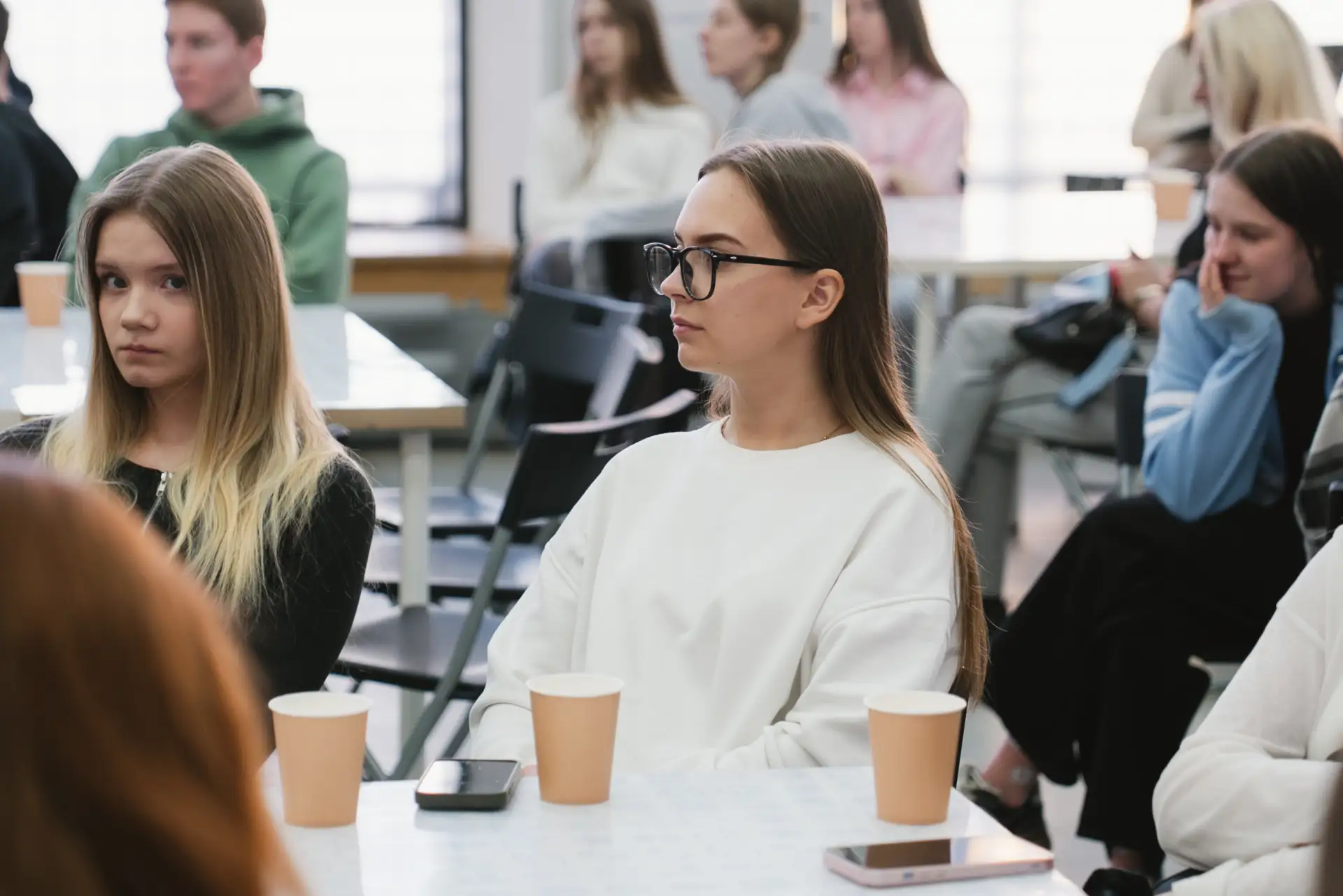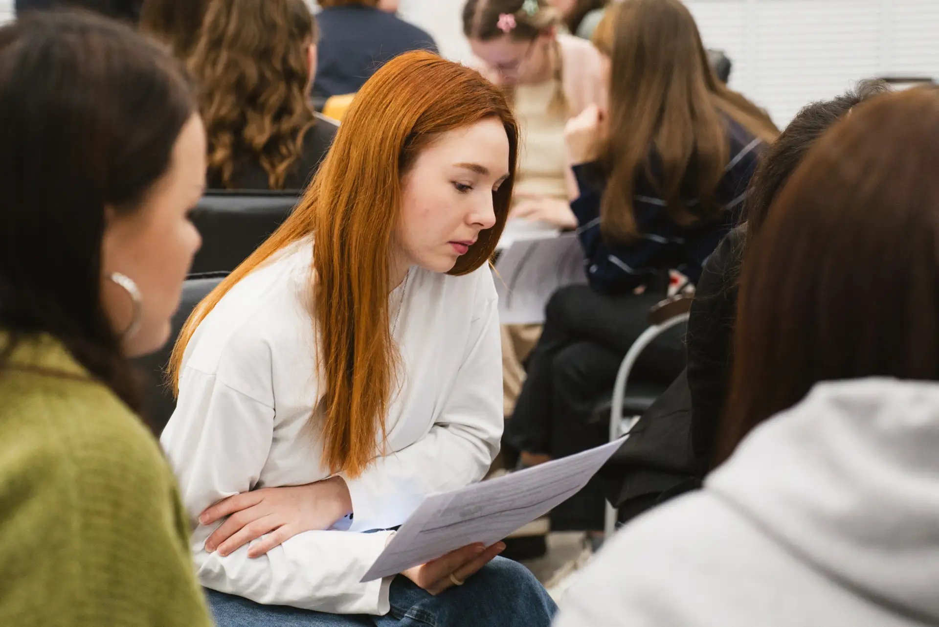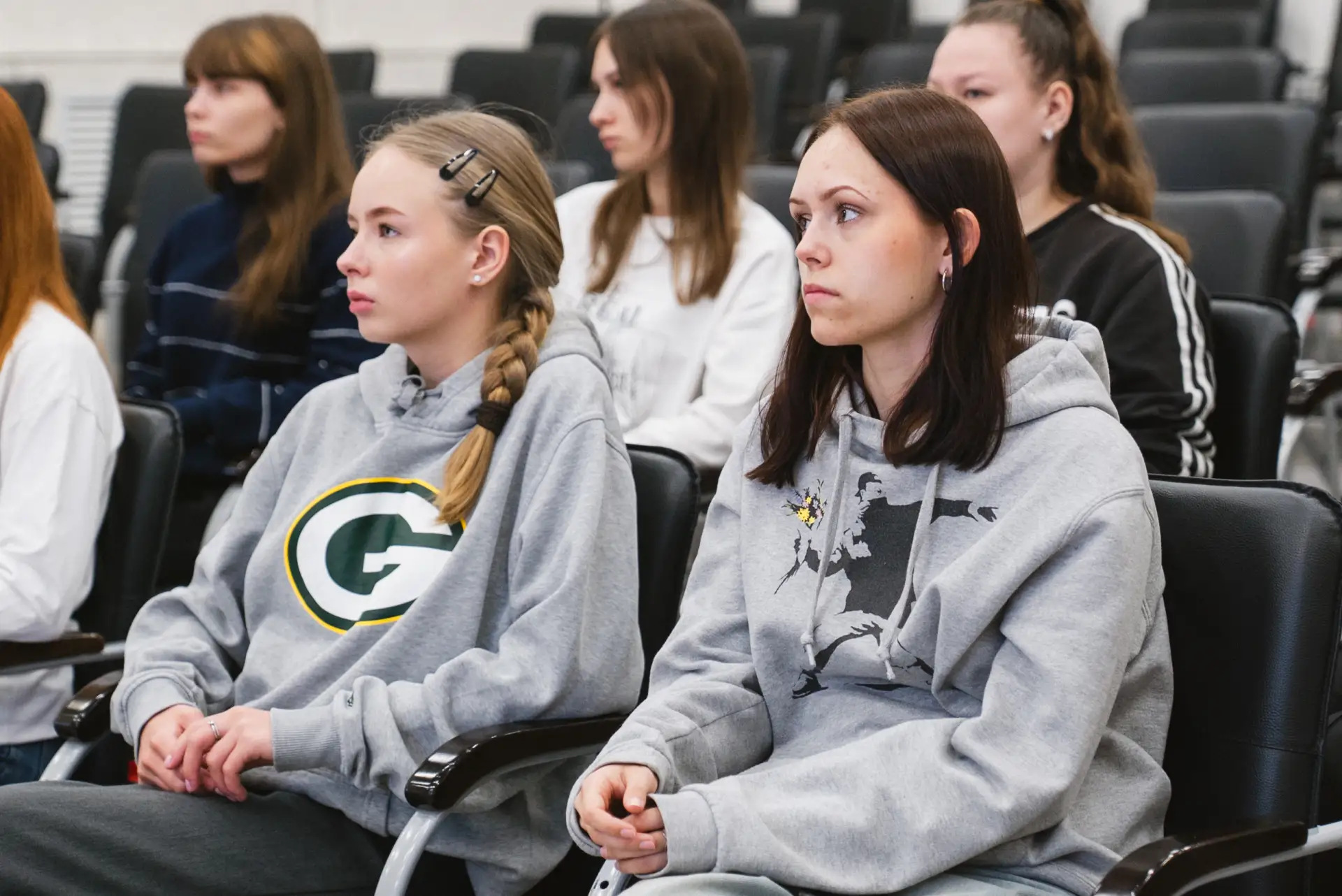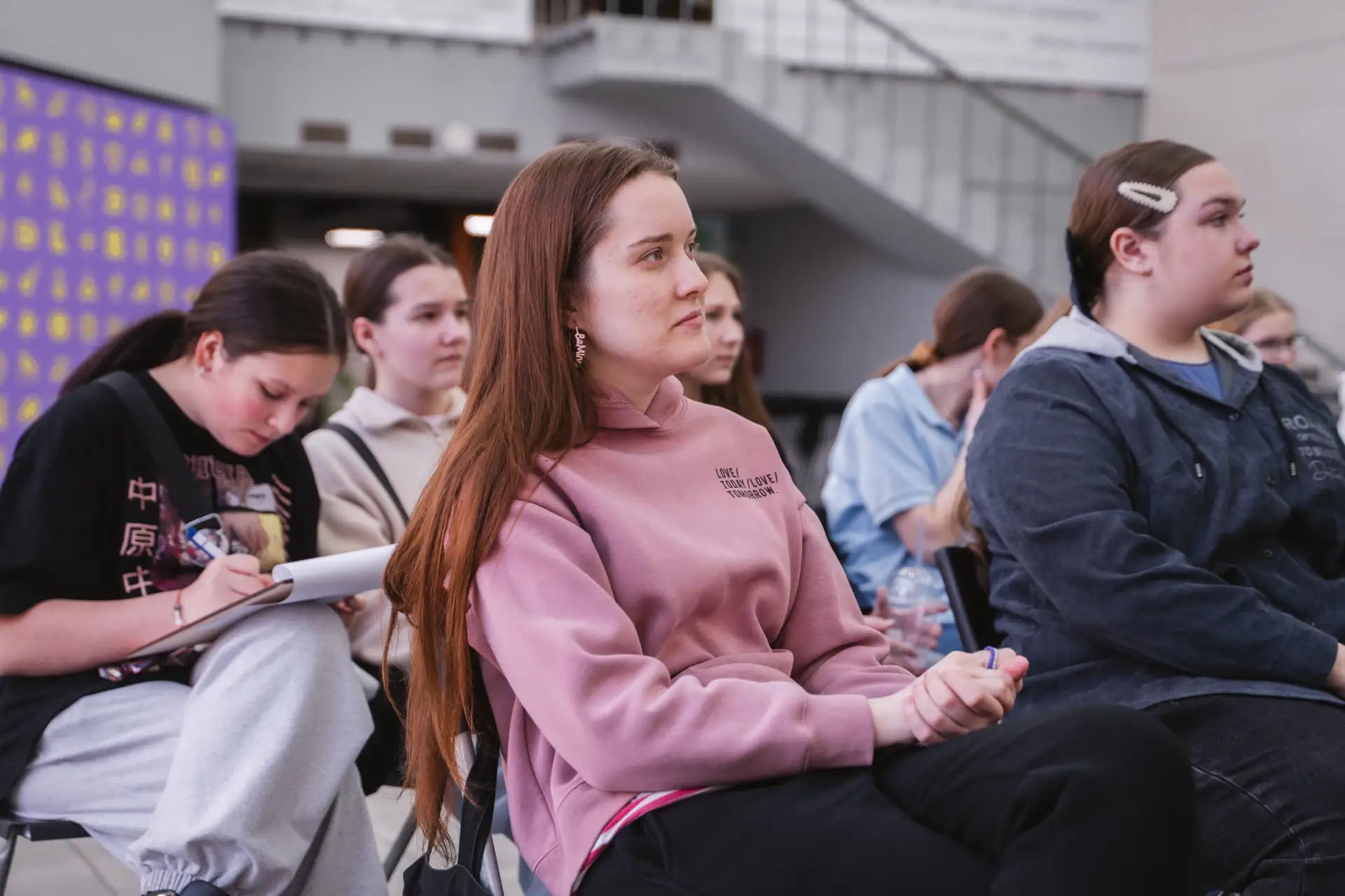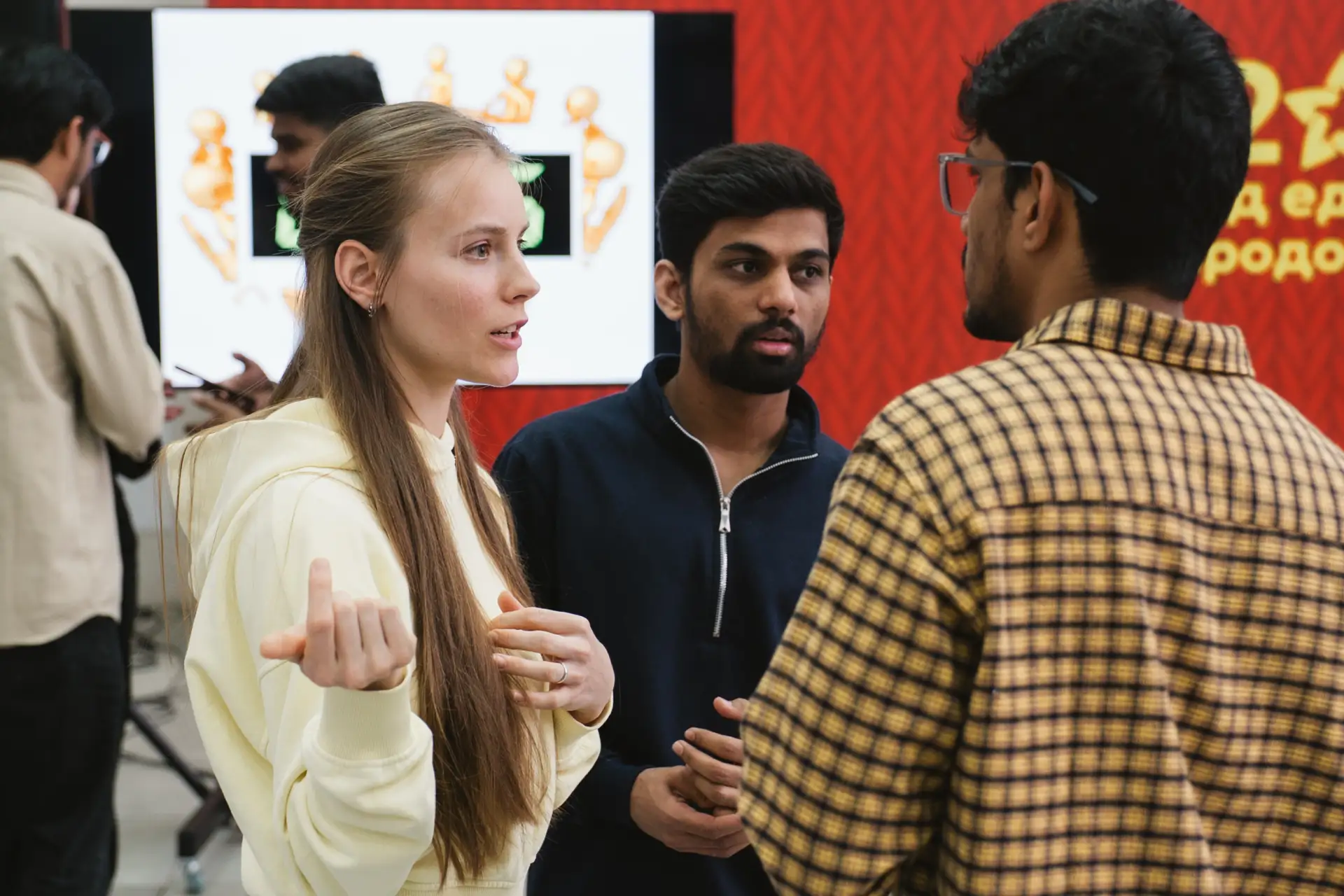 Меня зацепило, что здесь не только моя привычная группа, но и иностранные студенты. С ними очень интересно общаться — они открытые, всегда стараются поддержать разговор. Получается говорить и на русском, и на английском — это прям прокачивает!