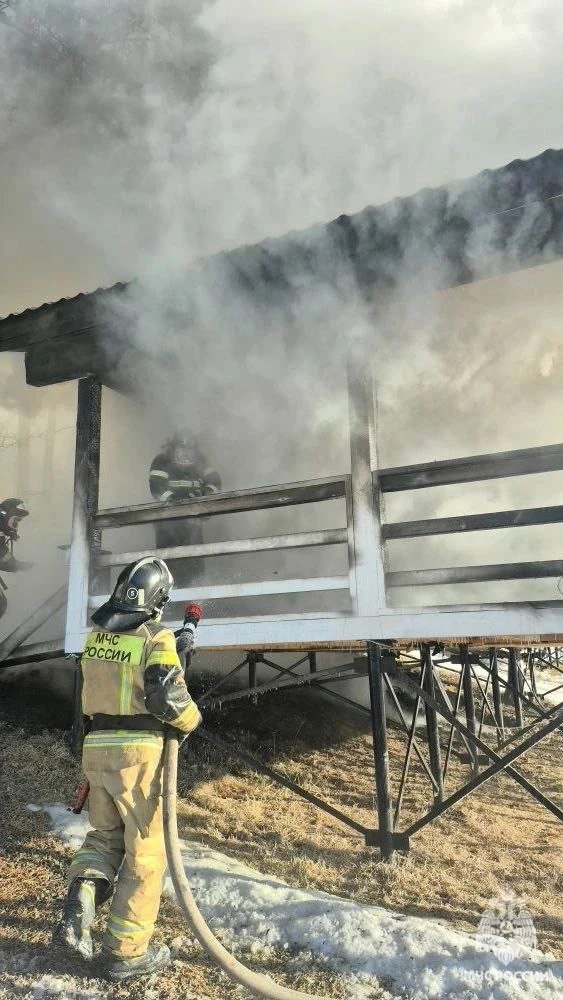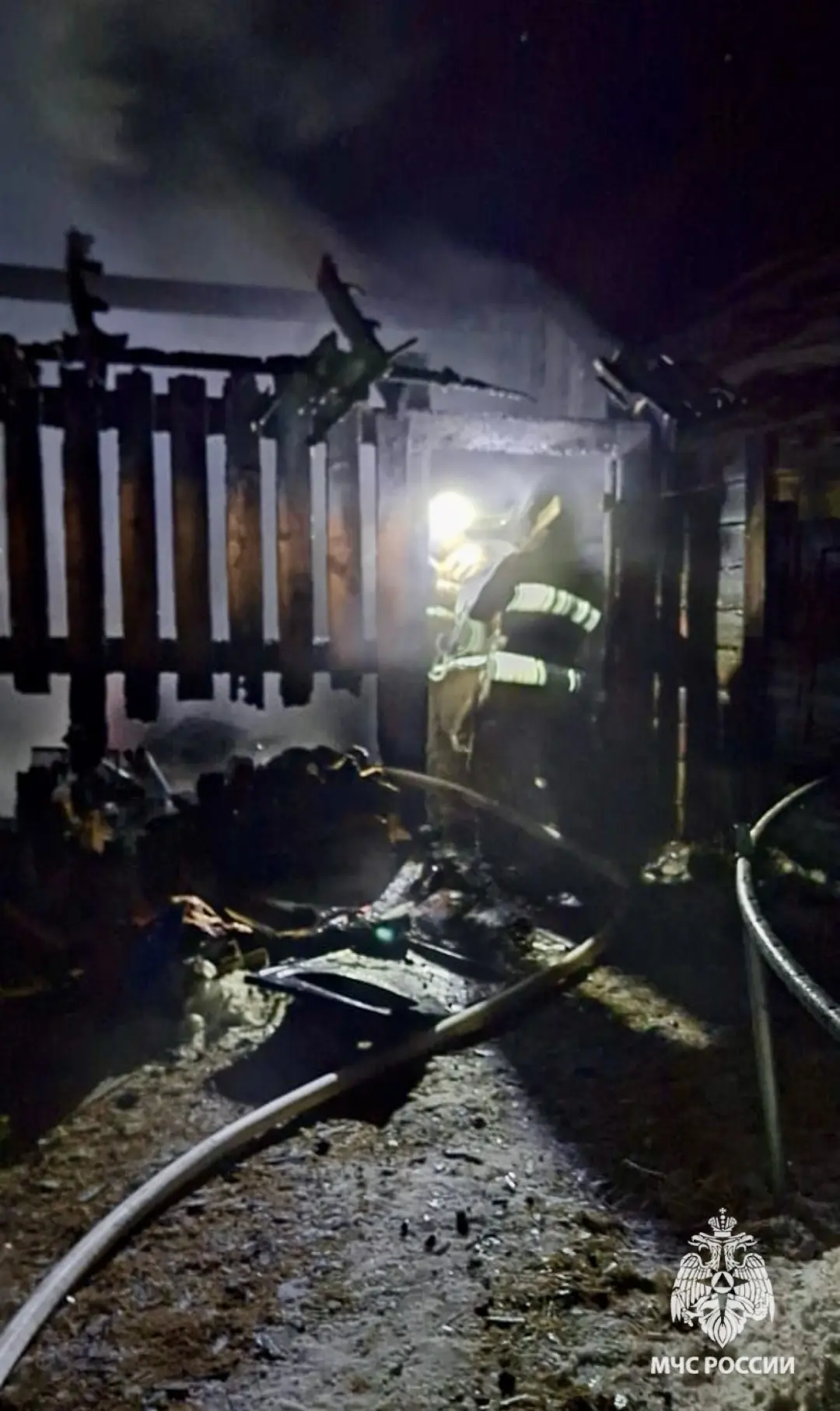 На момент прибытия первого подразделения огнем охвачены хозяйственные постройки и частично жилой дом.