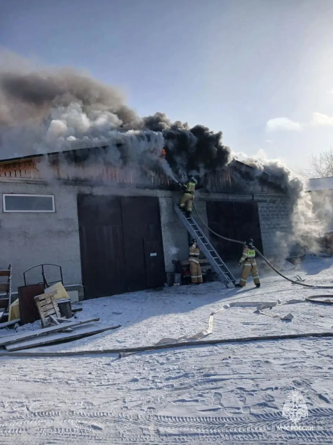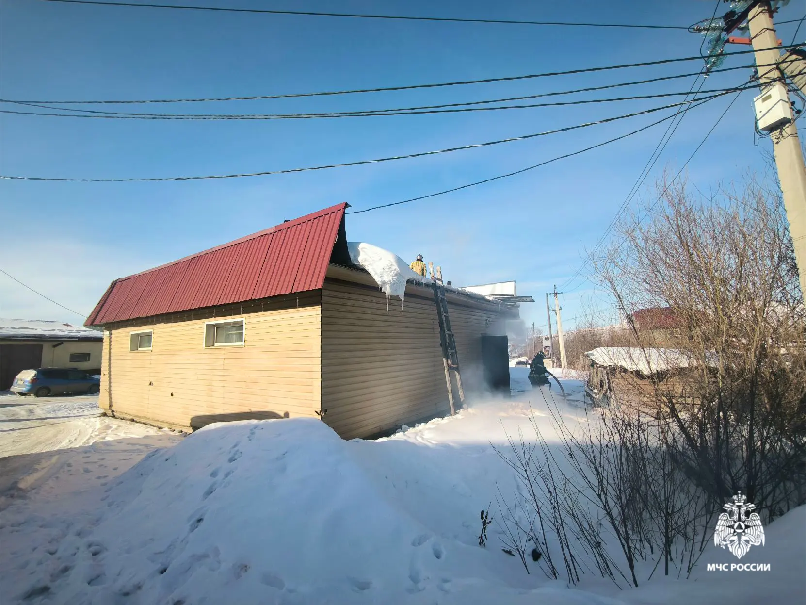 На момент прибытия первого подразделения баня и гараж, в котором находились три легковых автомобиля, были охвачены огнем. Пламя стремительно распространялось на второй этаж дома.