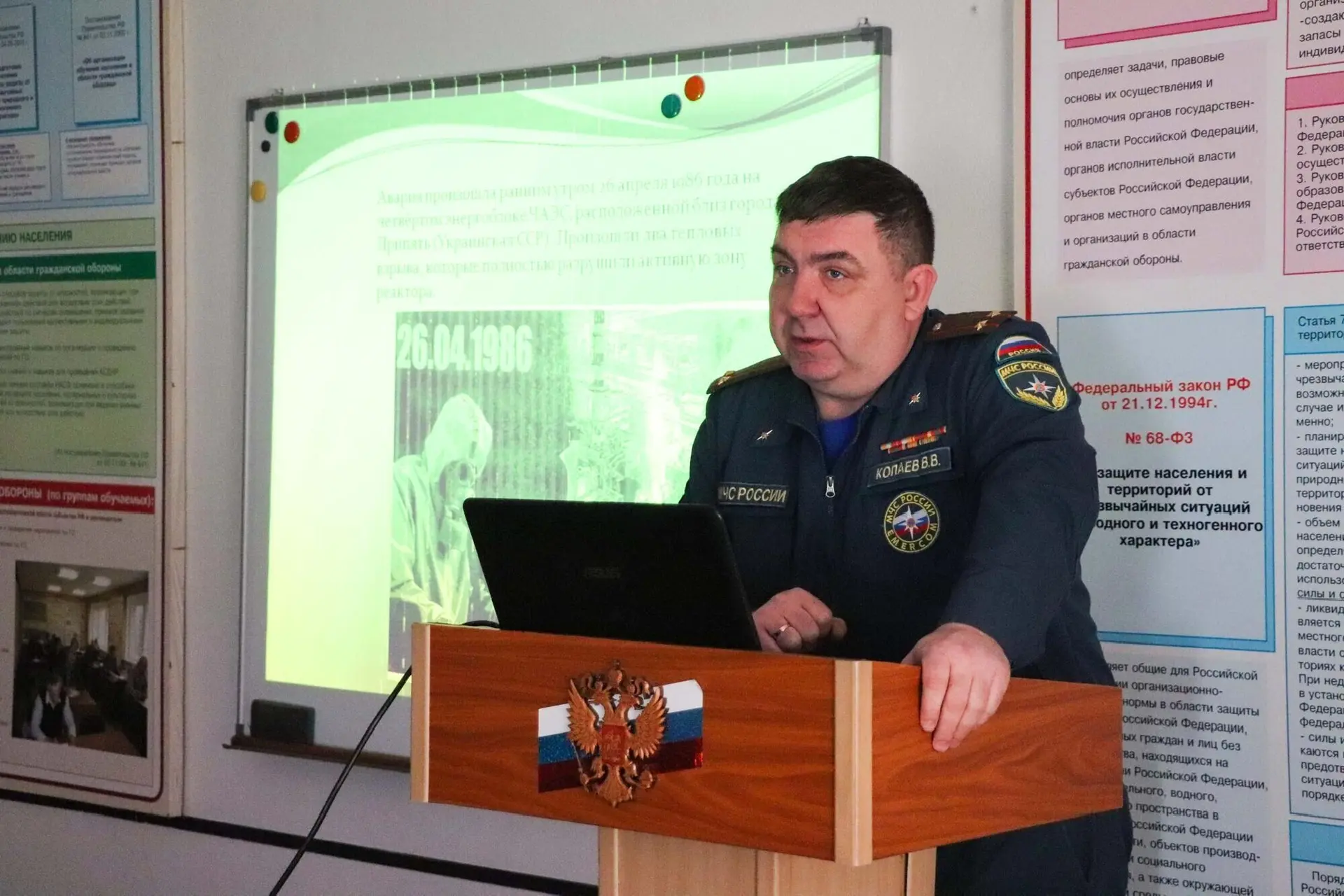 Вячеслав Копаев, начальник отделения гражданской обороны и подготовки населения Главного управления, вспомнил одну из самых трагических катастроф в истории — аварию на Чернобыльской атомной электростанции, которая произошла 26 апреля 1986 года.