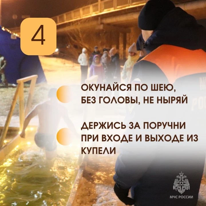 МЧС России призывает совершать обряд омовения исключительно в оборудованных для этого местах: здесь подготовлены специальные купели, организовано дежурство спасателей, врачей и сотрудников полиции.