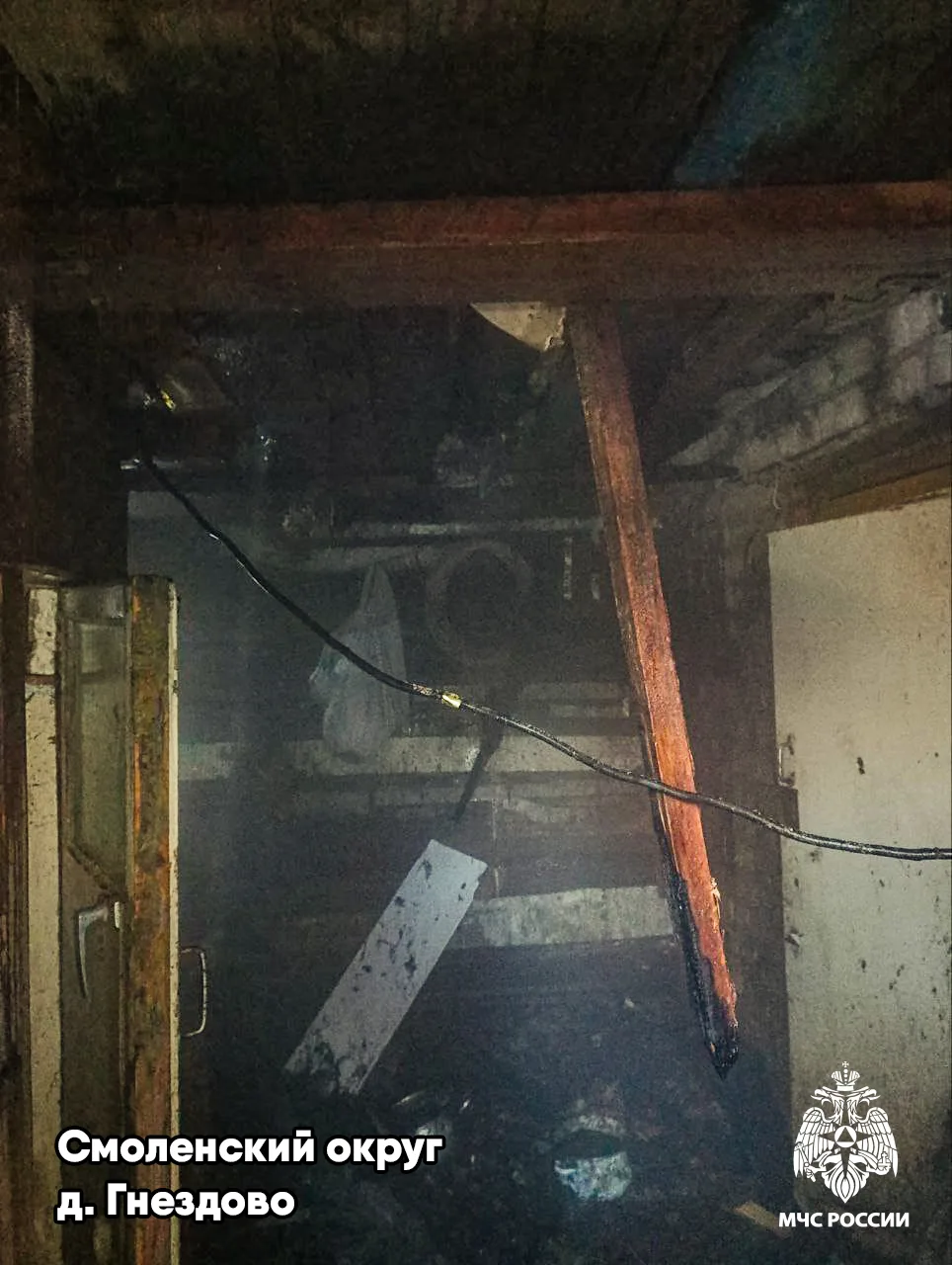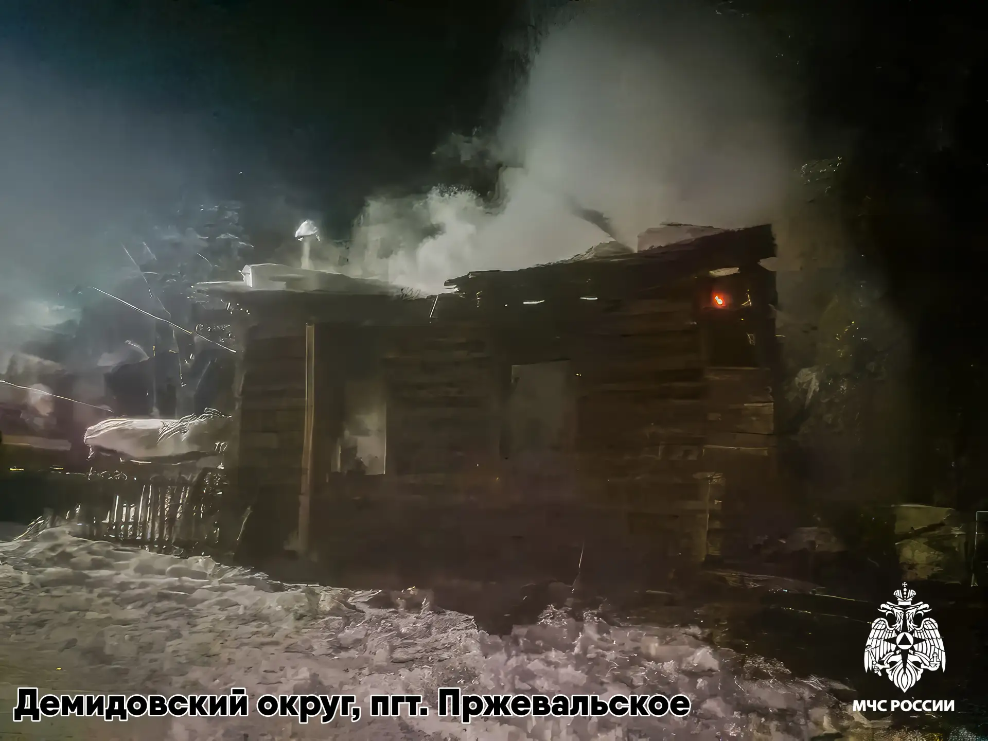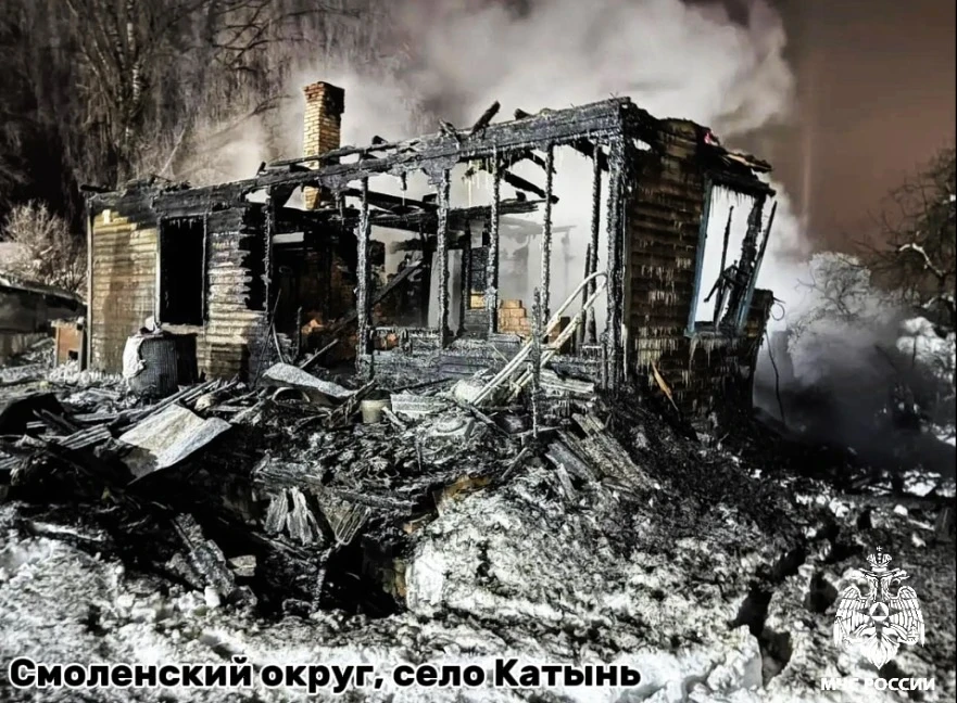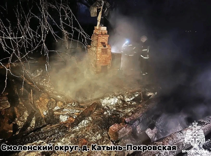 🔴 в 1:46 в селе Катынь Смоленского округа горел частный жилой дом. В результате случившегося строение уничтожено огнем. Пострадавших нет. Скорее всего, причиной пожара стала неисправность печи;