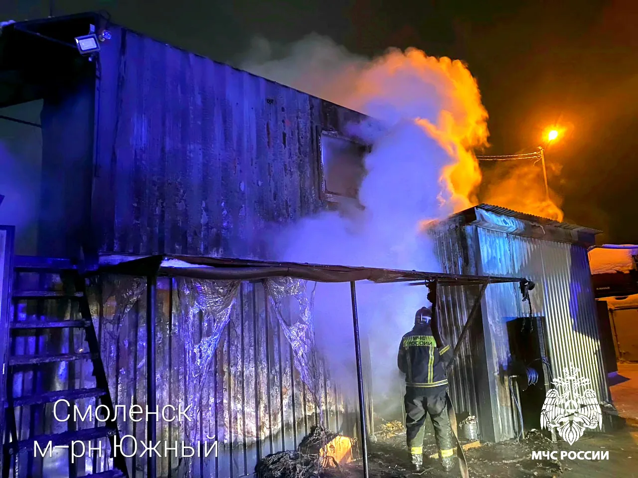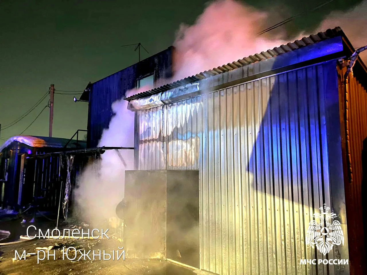 🔴 в 22:38 в микрорайоне Южный города Смоленск горели три цельнометаллические бытовки на земельном участке частника. В результате случившегося бытовые помещения выгорели на общей площади 70 квадратных метров. Пострадавших нет. Предварительная причина – короткое замыкание. К ликвидации пожара привлекались 2 единицы техники и 9 человек личного состава МЧС России;