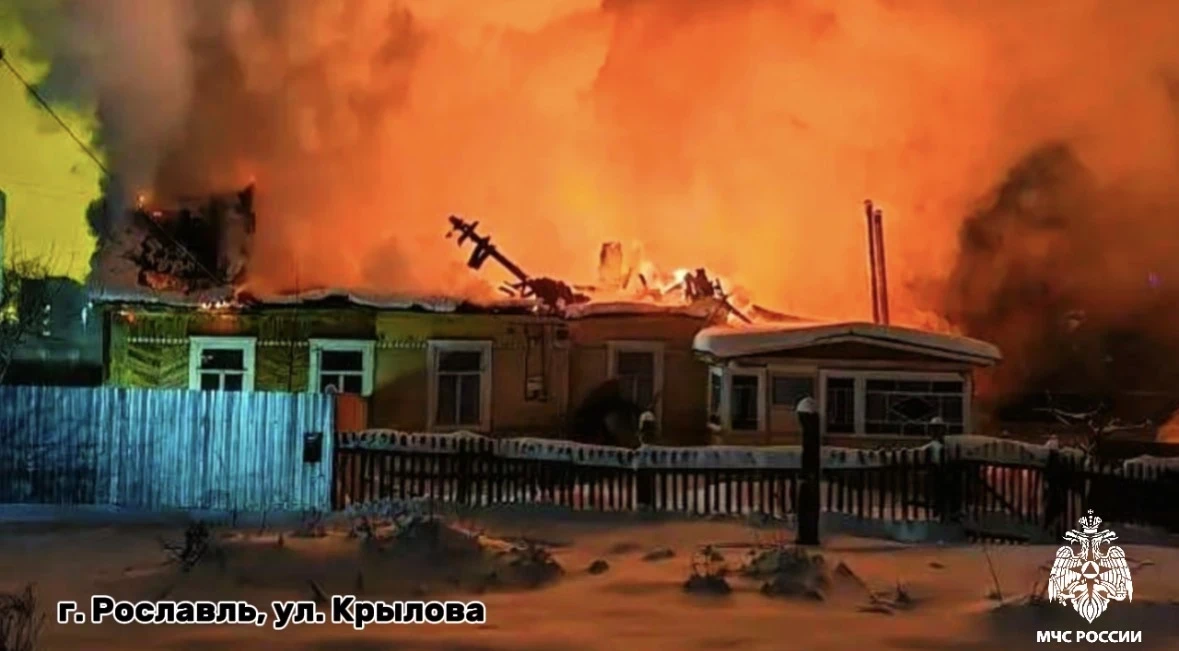 🔴 в 23:02 в Рославле на улице Крылова горел двухквартирный жилой дом. В результате случившегося огнем уничтожена кровля, квартиры выгорели по всей площади. Пострадавших нет. Скорее всего, причиной пожара стала неисправность печи;