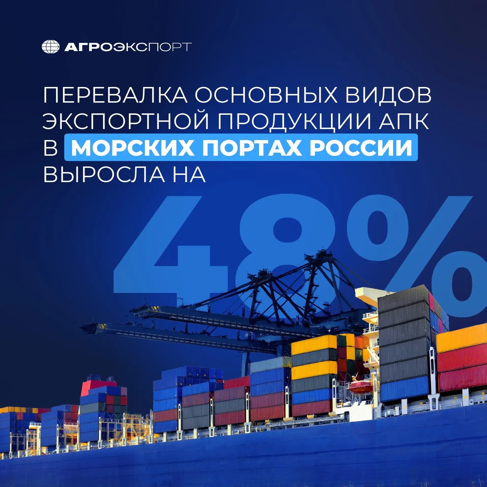 Перевалка основных видов экспортной продукции АПК в морских портах России выросла на 48%