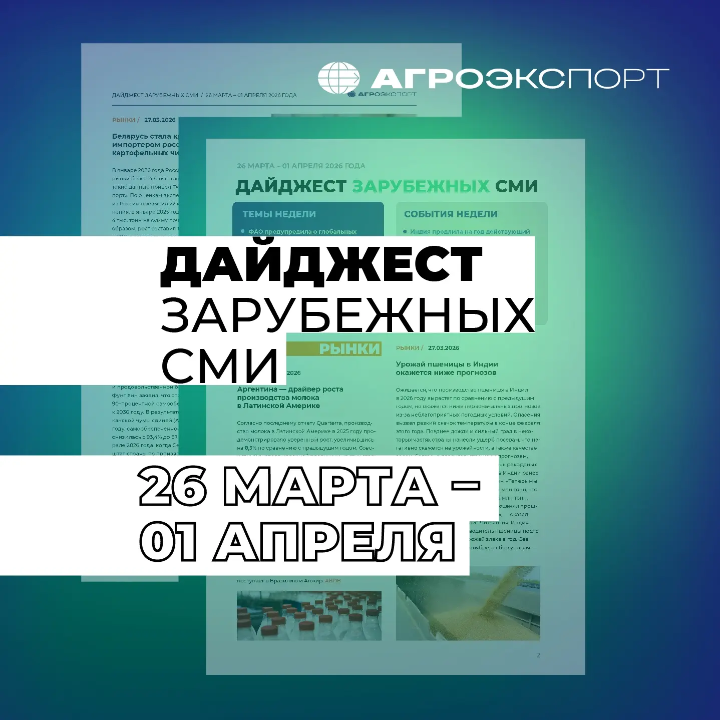 Дайджест зарубежных СМИ от «Агроэкспорта» (26 марта – 1 апреля 2026 года)