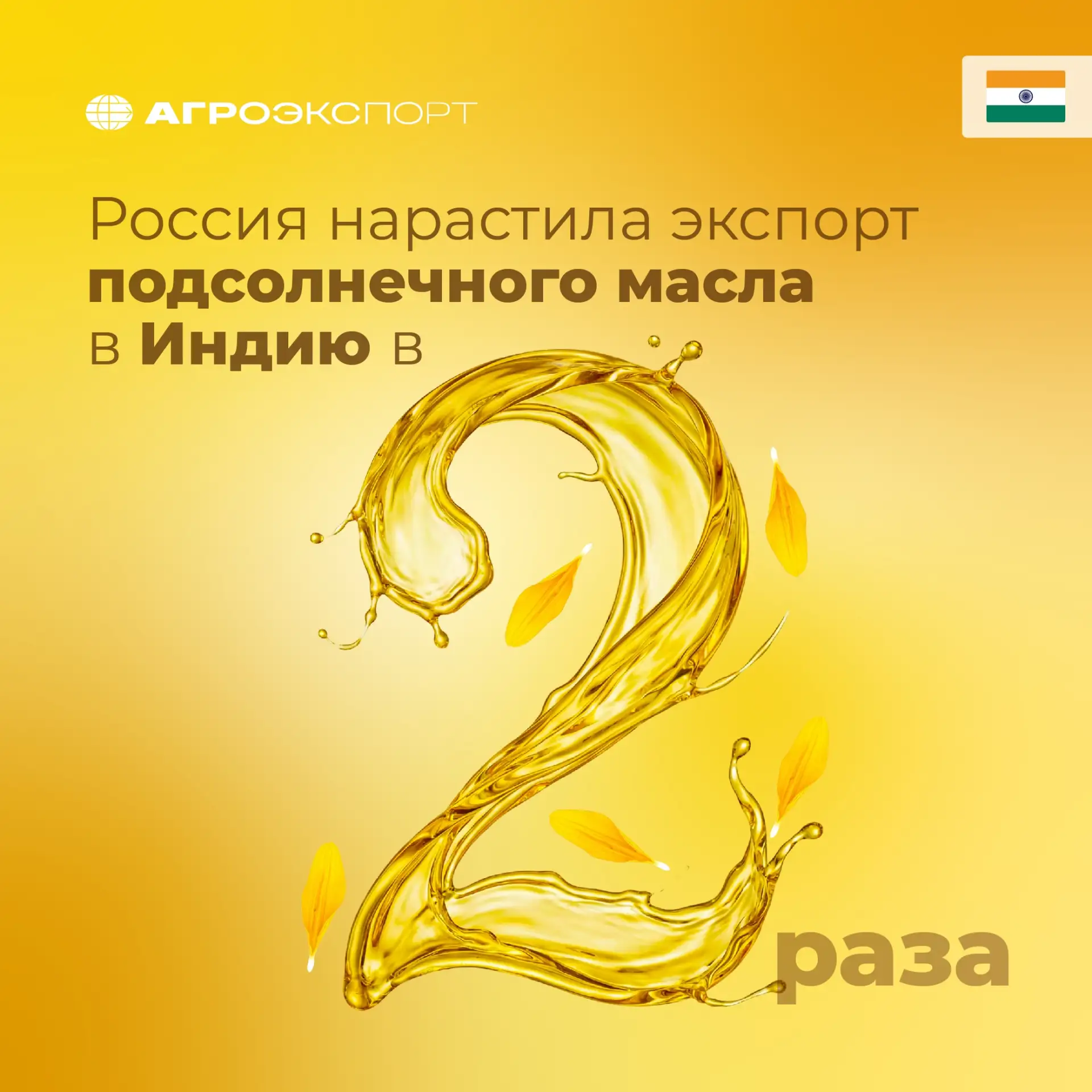 За весь предыдущий календарный год Россия экспортировала в Индию более 1,1 млн тонн подсолнечного масла на сумму около 1,3 млрд долл. США. При этом рекордным стал 2024 год — более 2,2 млн тонн на почти 2 млрд долл. США.
