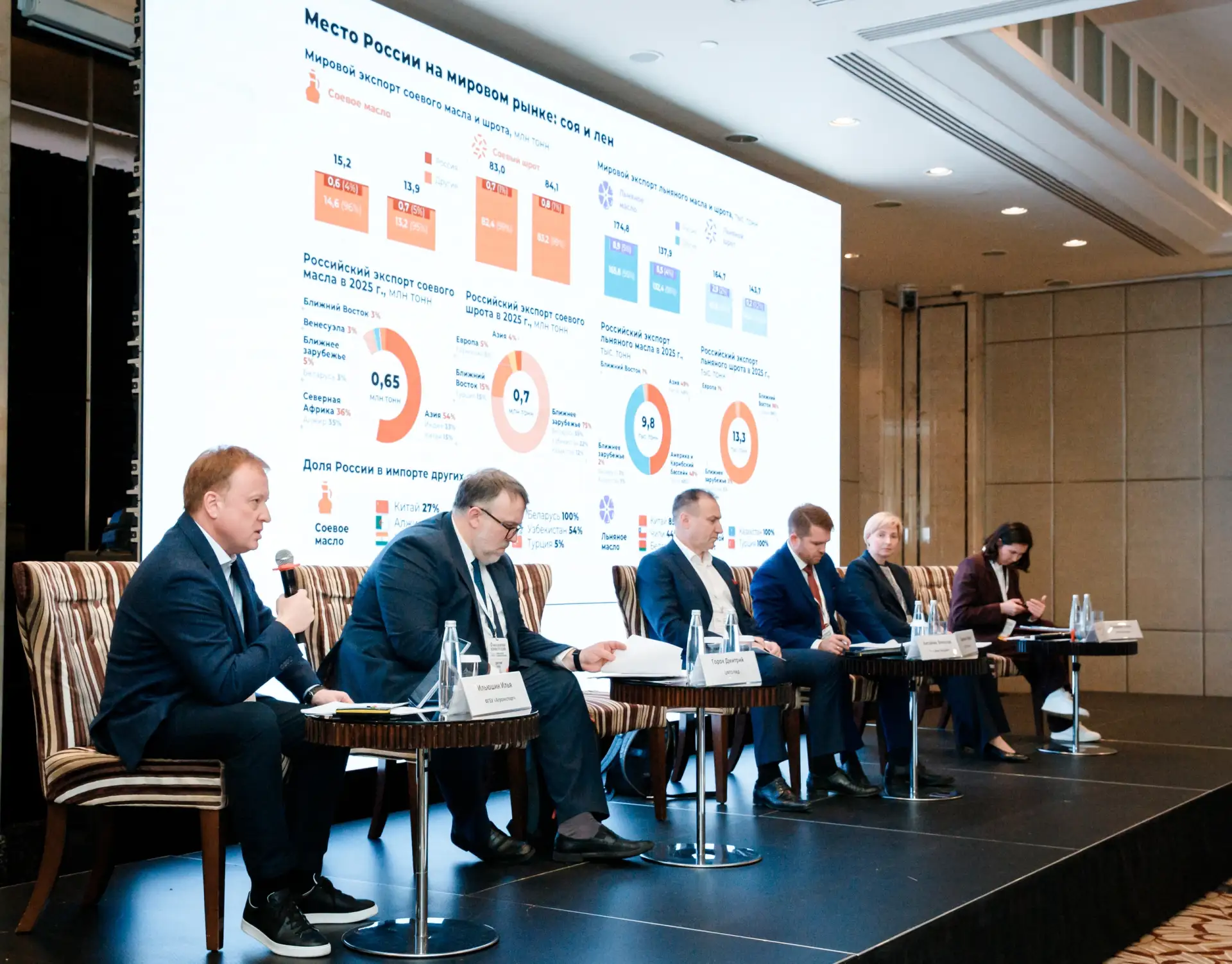 Одной из ключевых тем конференции стала экспортная повестка. Модератором сессии, посвященной развитию поставок масложировой продукции, выступил руководитель «Агроэкспорта» Илья Ильюшин, который акцентировал внимание на трансформации экспортной модели и текущих позициях России на мировом рынке. Так, за последние 10 лет наша страна заняла лидирующие позиции в сегменте подсолнечного и рапсового масел, обеспечив значительное расширение географии поставок и присутствия на ключевых рынках.