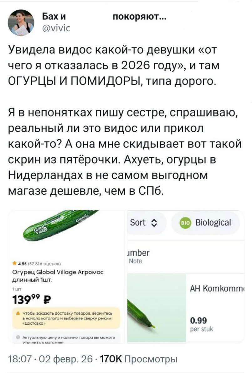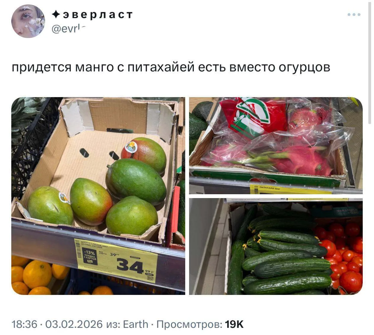 В сети обратили внимание, что огурцы сильно взлетели в цене и предлагают переходить на экзотические фрукты, которые стоят в разы дешевле огурчиков.