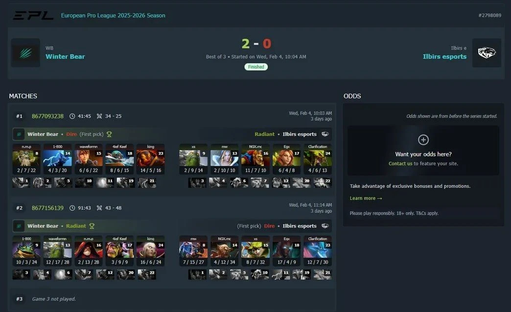 Геймеры на месте? В Dota 2 произошел самый странный подставной матч в истории. Вкратце - игрок 4IVAN из команды Winter Bear, которая выигрывала матч против Ilbirs eSports, ливнул из игры. Изначально все подумали, что проблемы с интернетом и ждали игрока, но он так и не появился. В итоге его команда начала играть вчетвером, управляя его персонажем в игре, ради победы. Но 4IVAN понял, что так его команда может выиграть, так как персонажей в игре всё равно 5, поэтому вернулся в игру и встал AFK. Но мошеннику не повезло и его команда всё равно выиграла, хоть и играла 4 на 5.