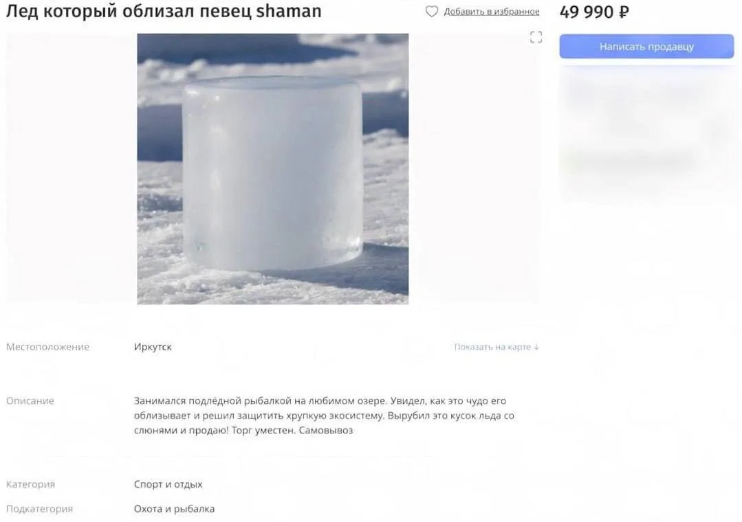 Лед, который вылизал Шаман, выставили на продажу за 50 000 рублей.