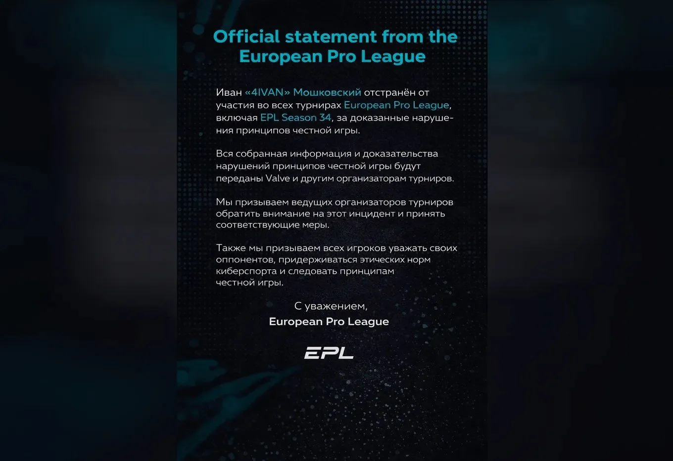 Позже всплыла информация, что 4IVAN поставил на проигрыш своей команды 150к баксов. Но он их проиграл, а так же полностью разрушил свою карьеру - его забанили на всех турнирах по Dota 2.