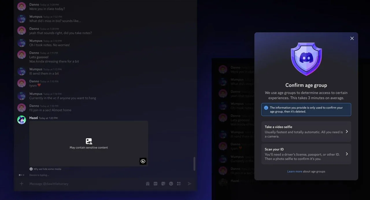 Тем временем в Дискорде сделают вход по паспорту. Непроверенные аккаунты будут обозначаться «детскими», с них нельзя будет заходить на сервера 18+, а весь контент будет заблюрен. Незнакомые люди не смогут писать на такие аккаунты. Подтвердить возраст можно будет только снимком паспорта, либо видеосканом лица.