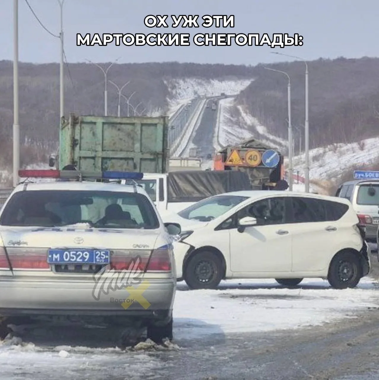 Мартовский снегопад засыпал Уссурийск и спровоцировал массовые ДТП на трассах