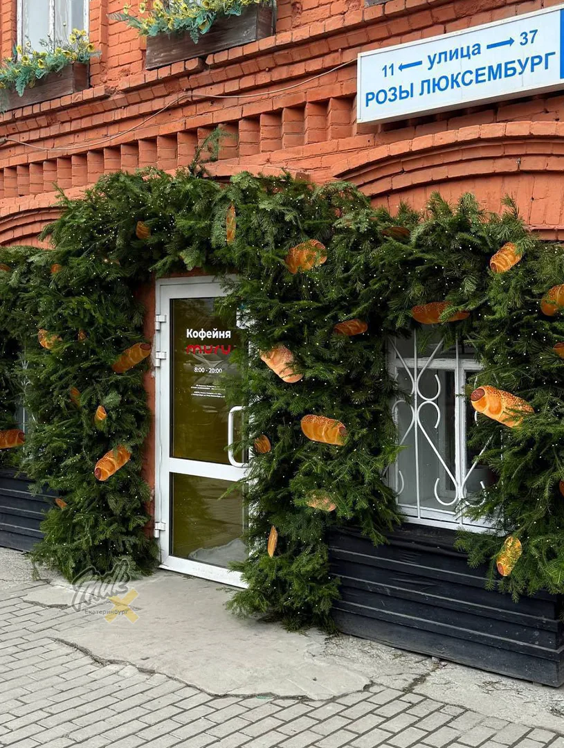В Екатеринбурге входную группу в кофейне украсили сосиками в тесте