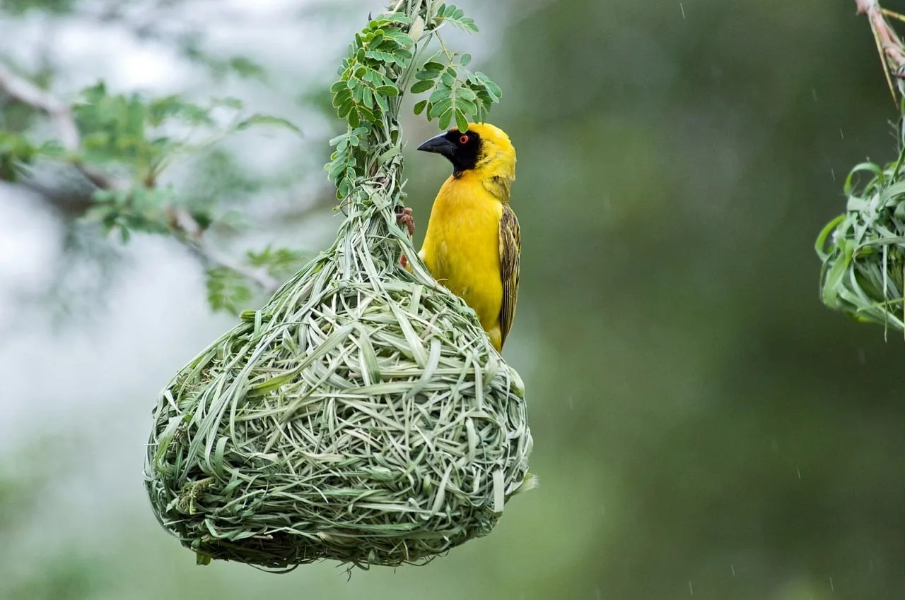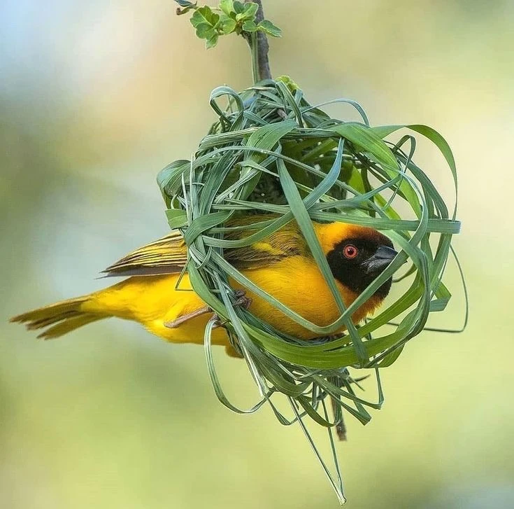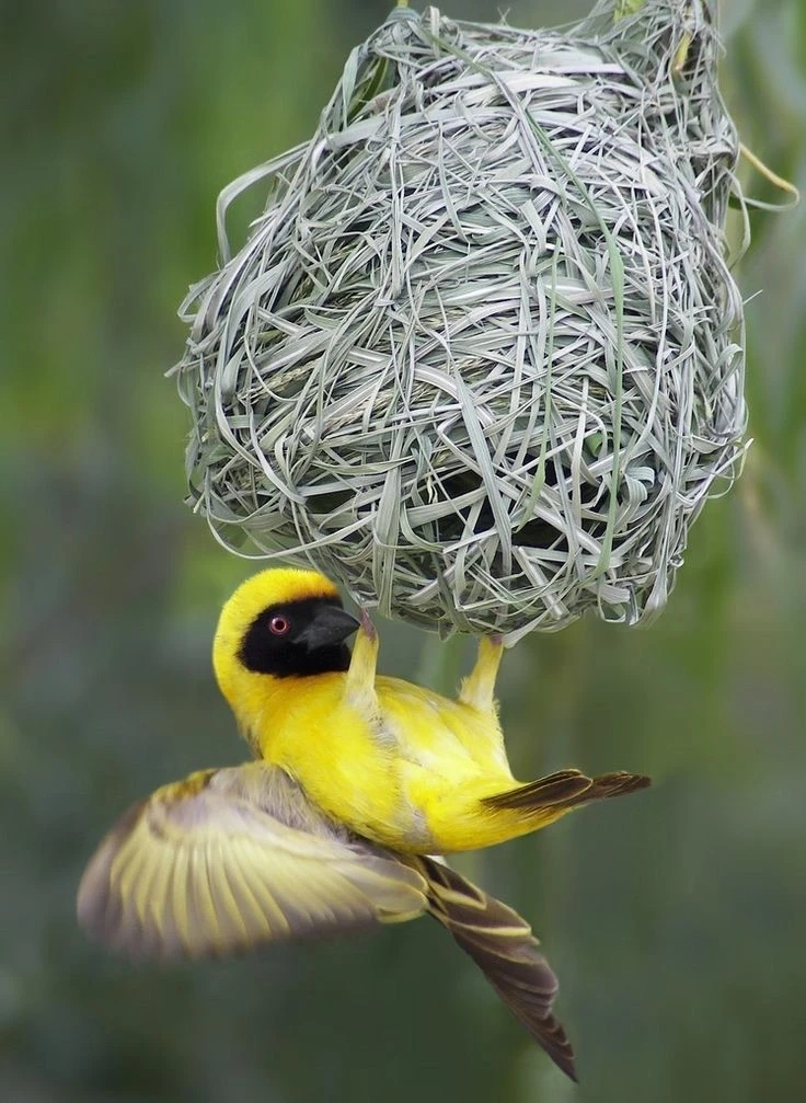 Это птицы-ткачики весом всего 30 граммов. Родственники воробьев, которых много в Африке, а также Австралии и Океании.