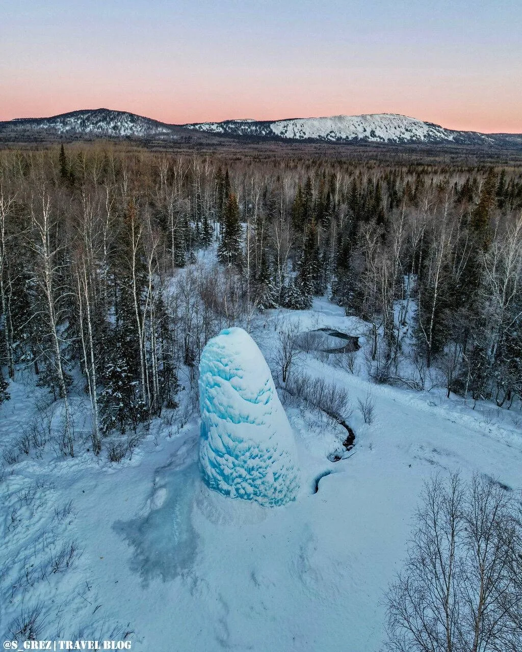 В нацпарке «Зюраткуль» каждую зиму появляется необычный ледяной фонтан 🤩