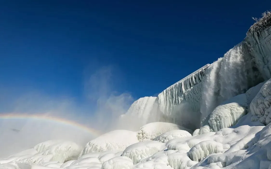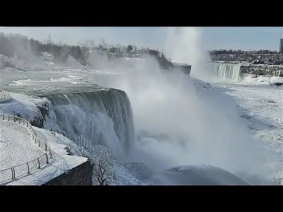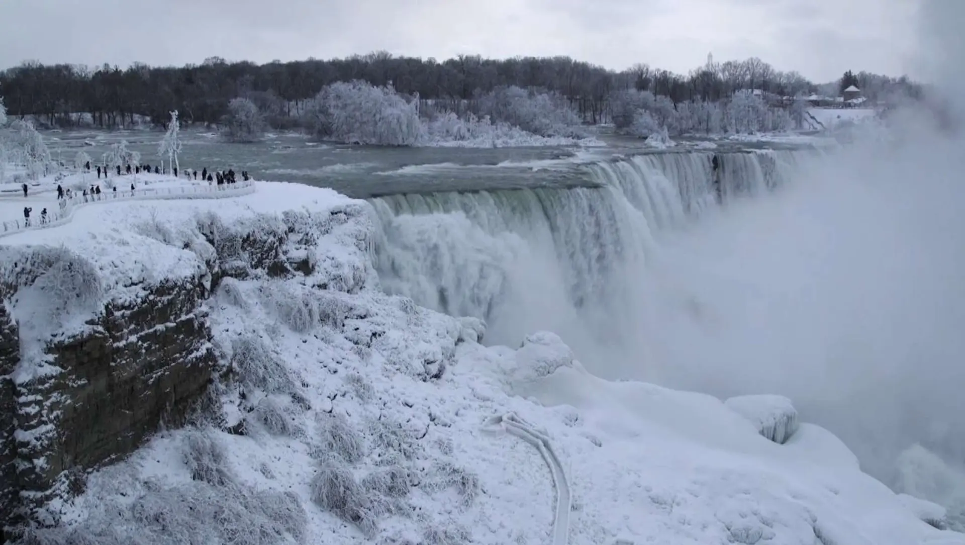 Лютые морозы в Северной Америке почти остановили Ниагарский водопад.