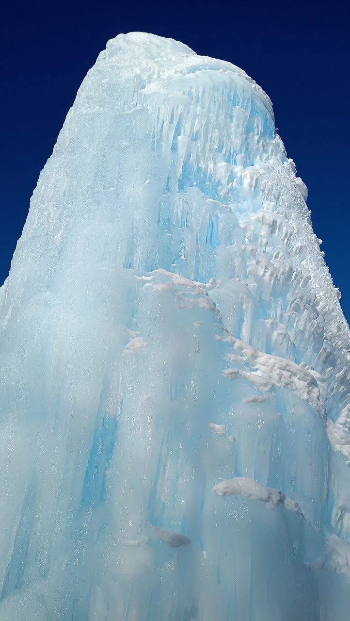 Из артезианского источника вода замерзает слоями, превращаясь в новую скульптуру — ни одна не повторяется.