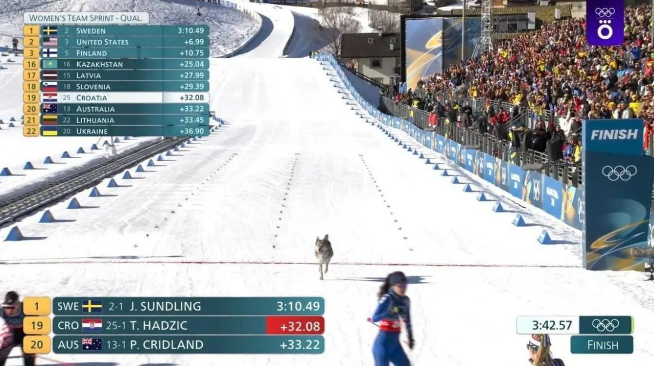 Неожиданный участник Олимпиады-2026: во время женского спринта трассу разделила с лыжницами чехословацкая волчья собака. Четвероногая «спортсменка» финишировала вместе со всеми и даже попала на официальное фото финиша!
