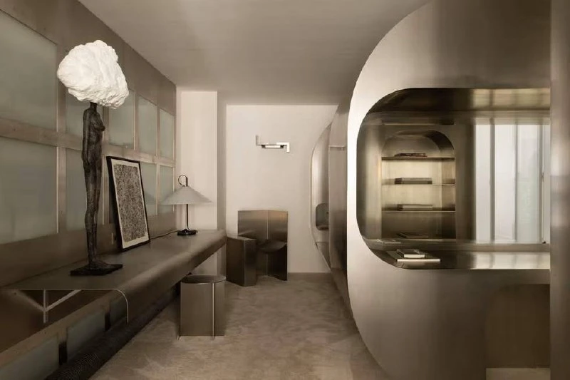 Бывший офис Карла Лагерфельда в Париже превратили в апартаменты. 250 м² в доме 200-летней давности, интерьер в стиле футуризма 60–70-х (как и задумывал сам Карл), плюс сауна и хаммам. Можно арендовать.