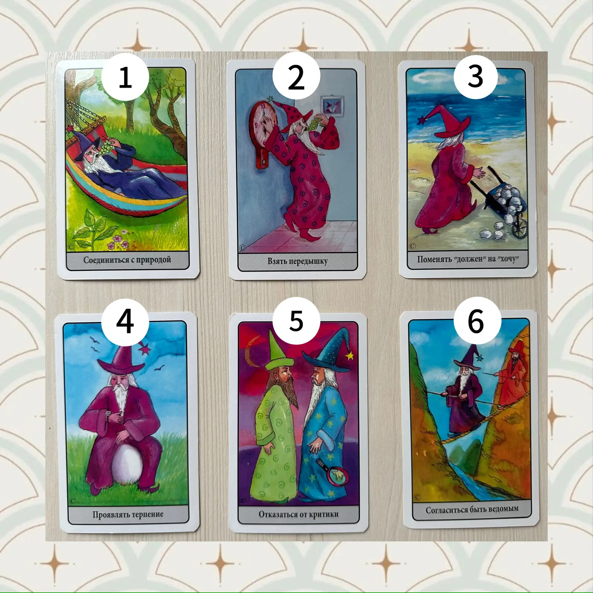 4️⃣ Поиск внутренней опоры. Эта колода имеет свой особый стиль и шарм. Я бы сказала, она камерная, такая немного интровертная. Именно обращенность в себя, внимательное и бережное отношение к своему внутреннему миру поможет найти свое предназначение.