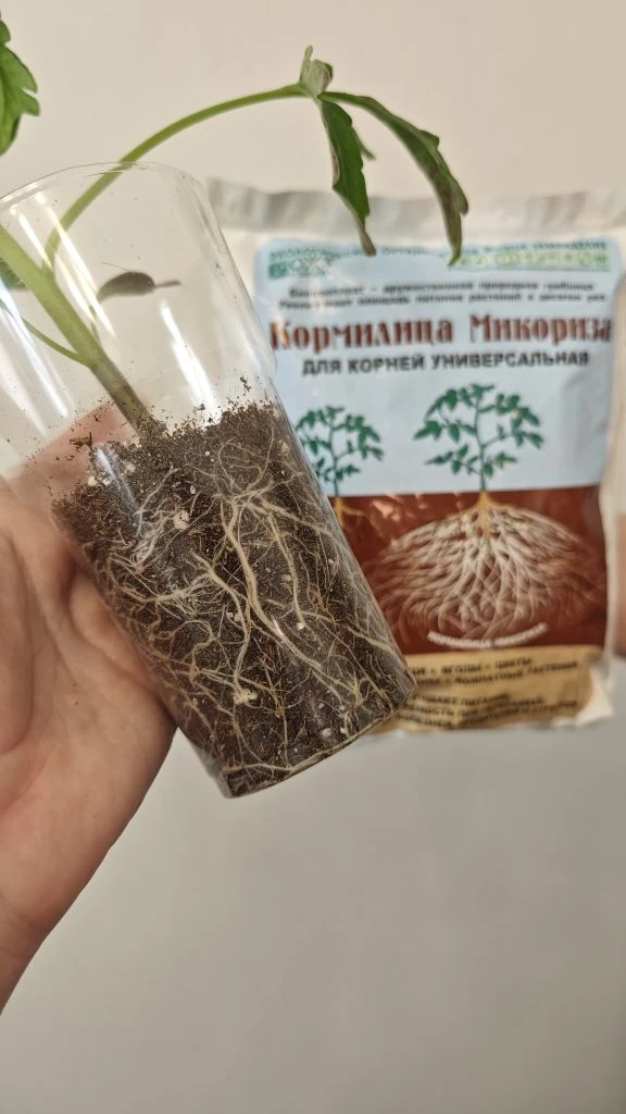 Для этого вносим Кормилицу Микоризу - просто присыпаем корни рассады.