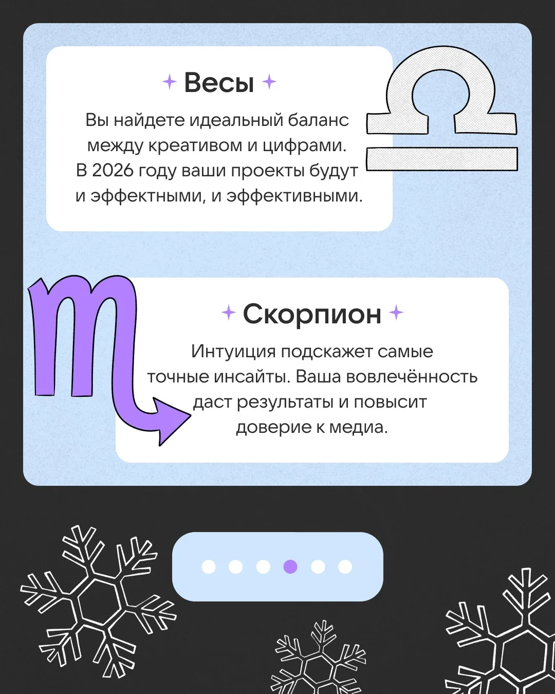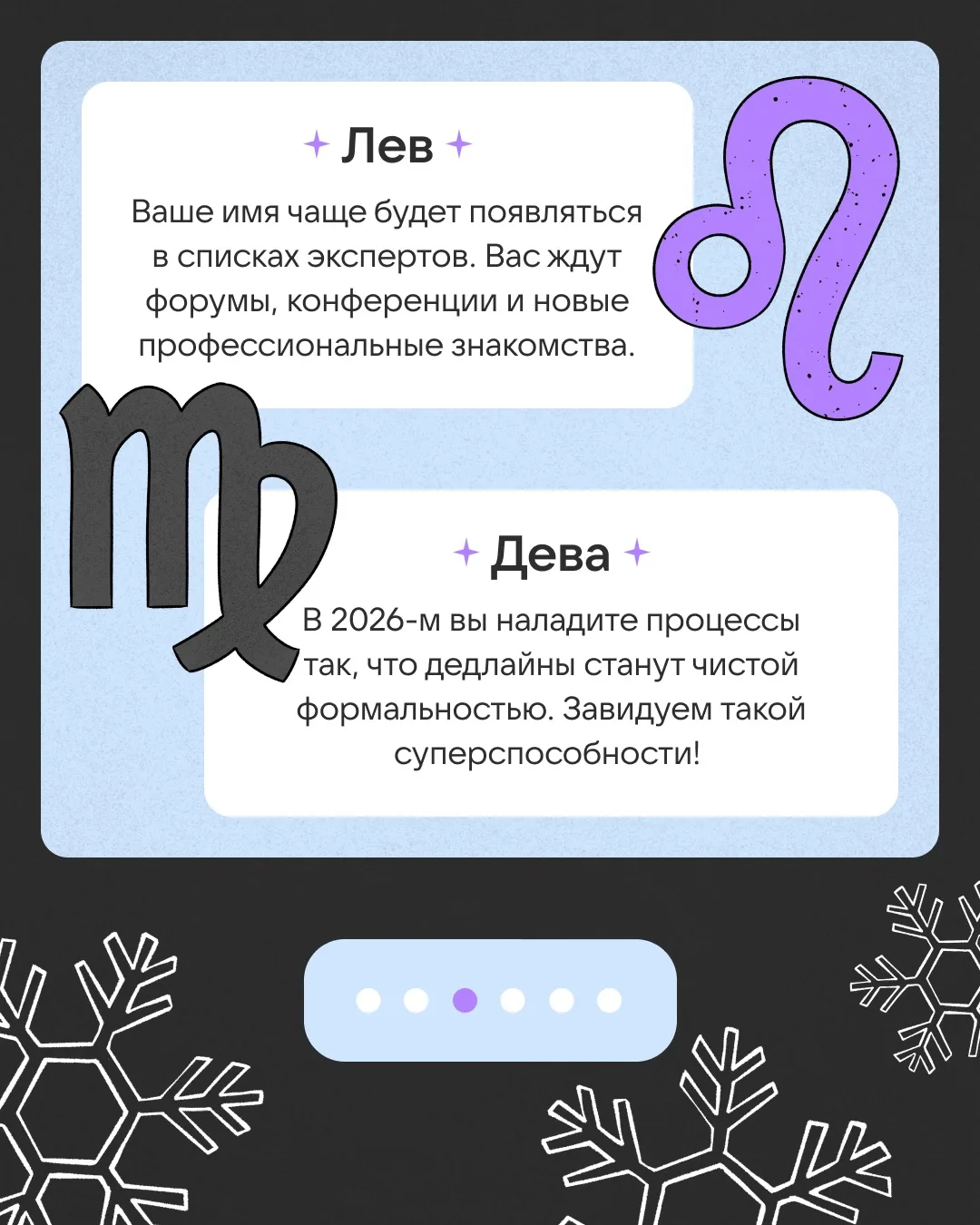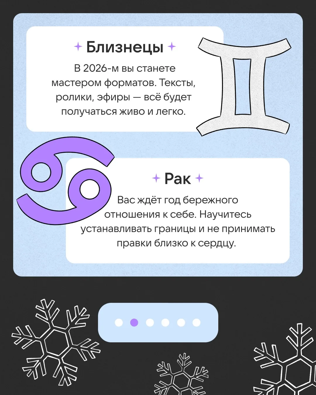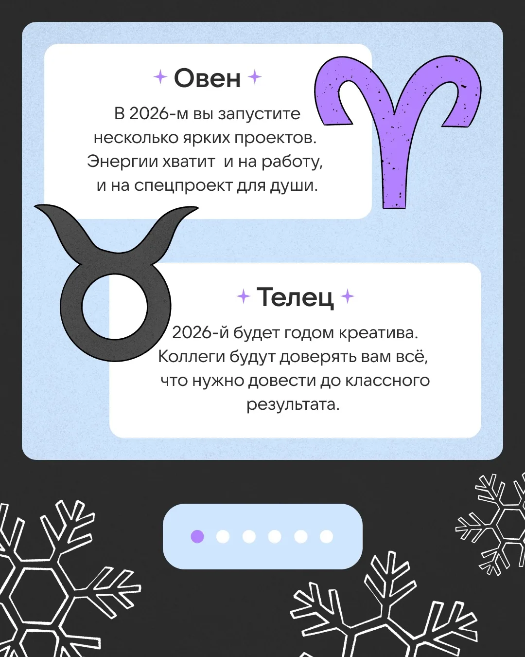 Ищите свой знак зодиака на карточках, узнавайте, что вас ждёт в 2026-м, и ставьте лайки, чтобы сбылось!