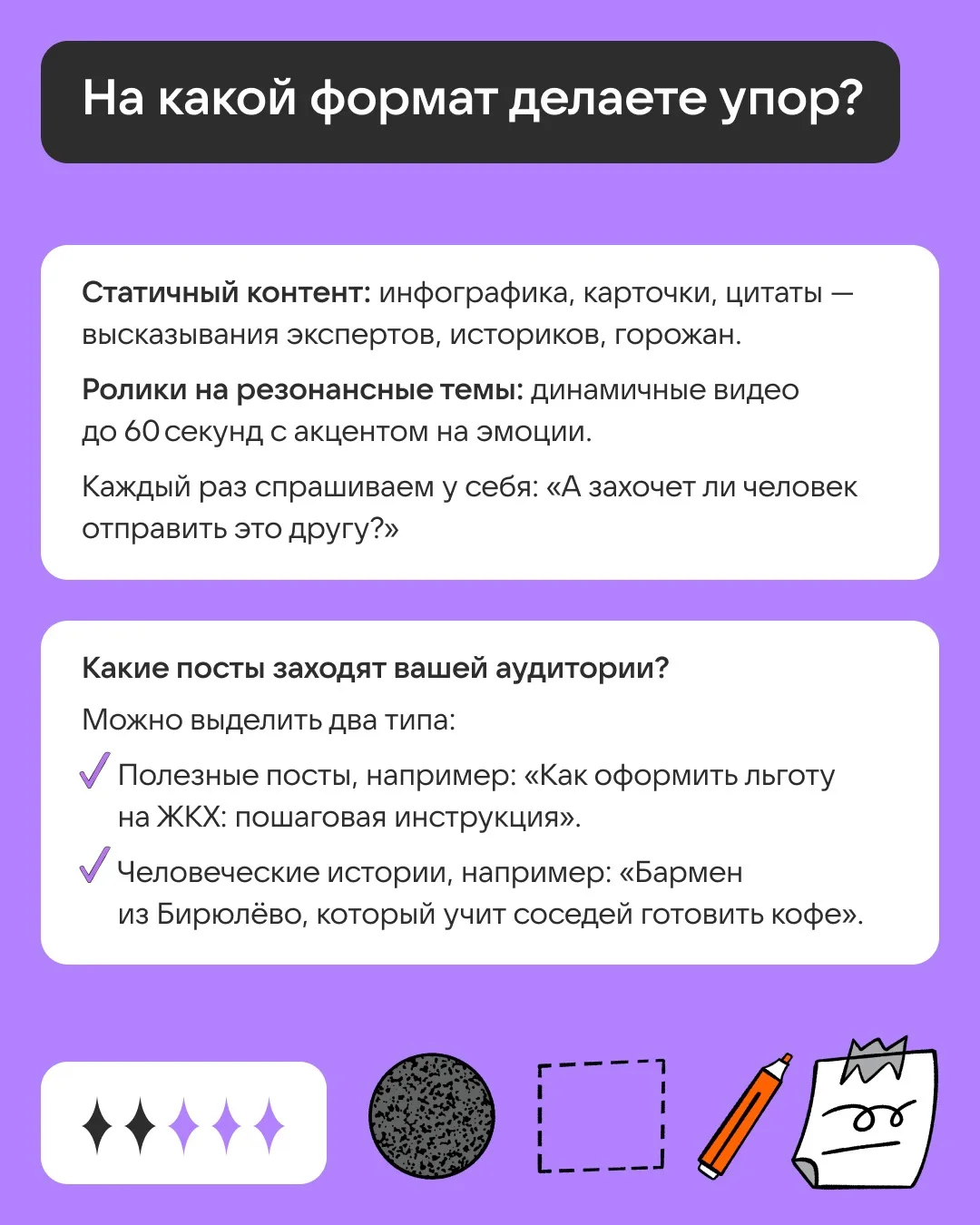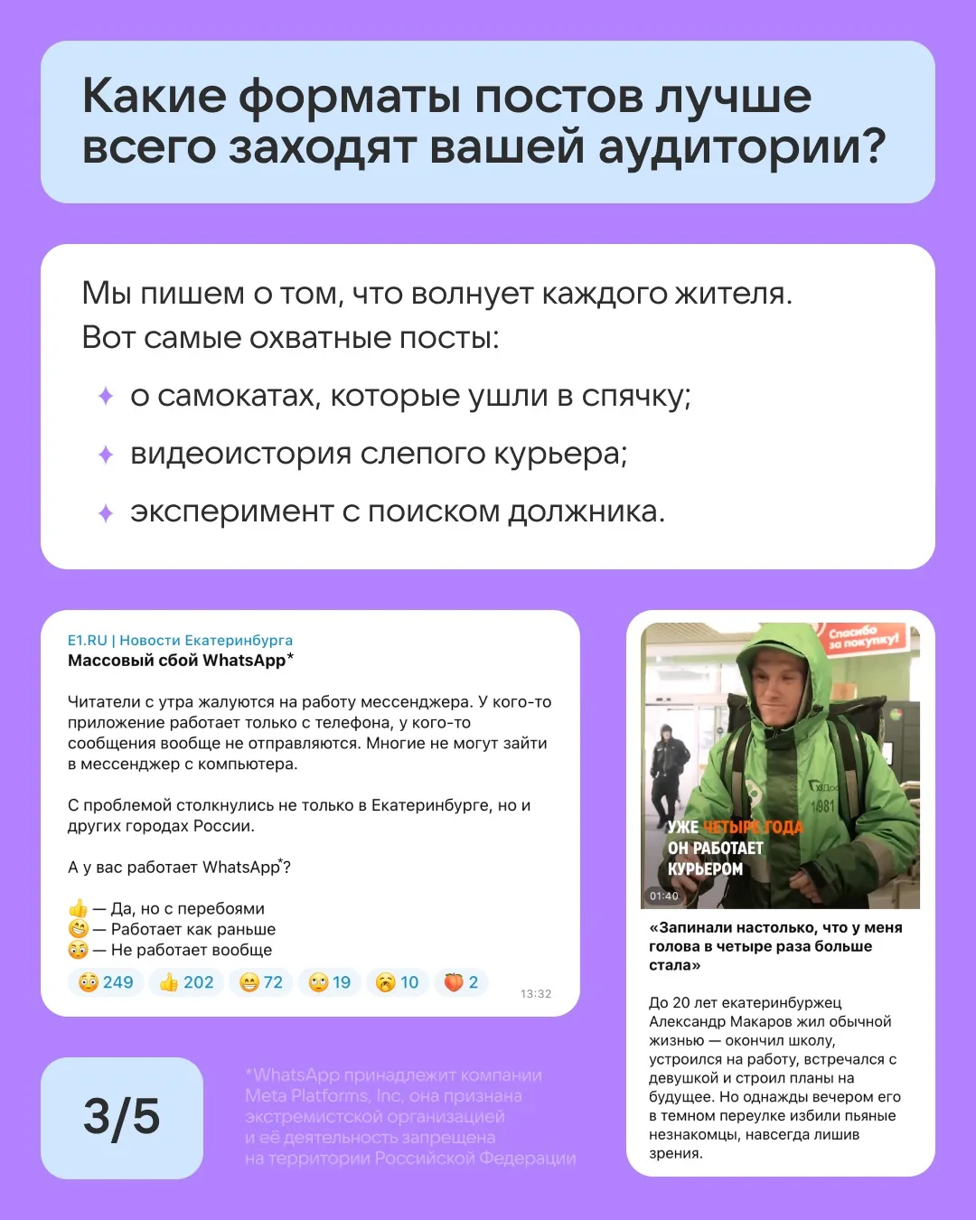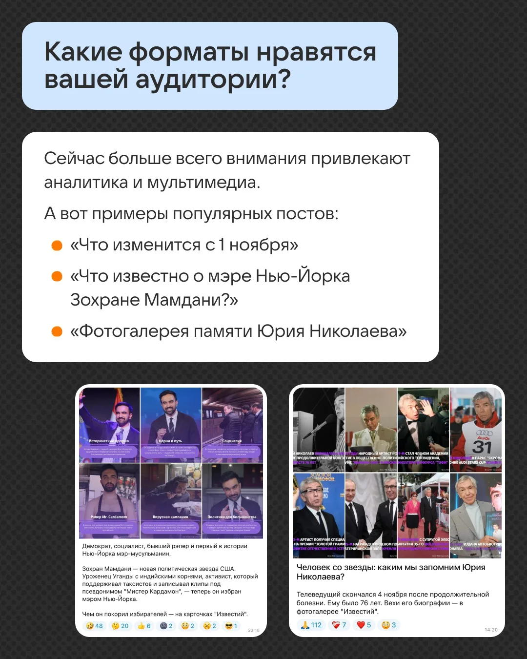 Шеф-редактор СММ-отдела Николай Заболотный поделился, какие форматы лучше всего заходят аудитории и на что издание делает упор в своём контенте. Ответы — в карточках.