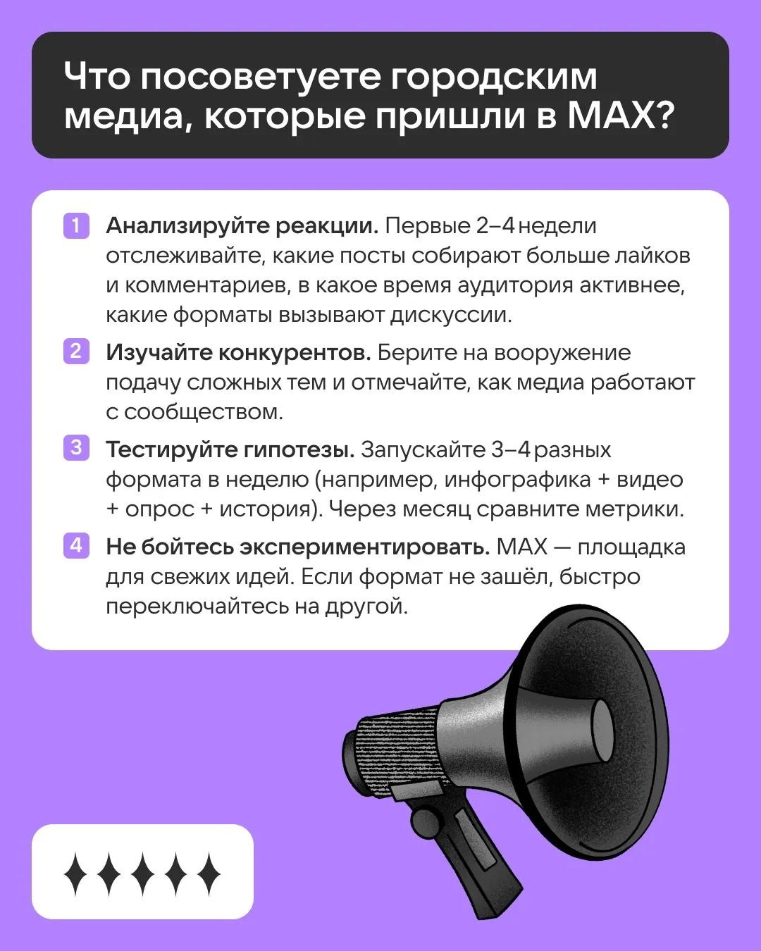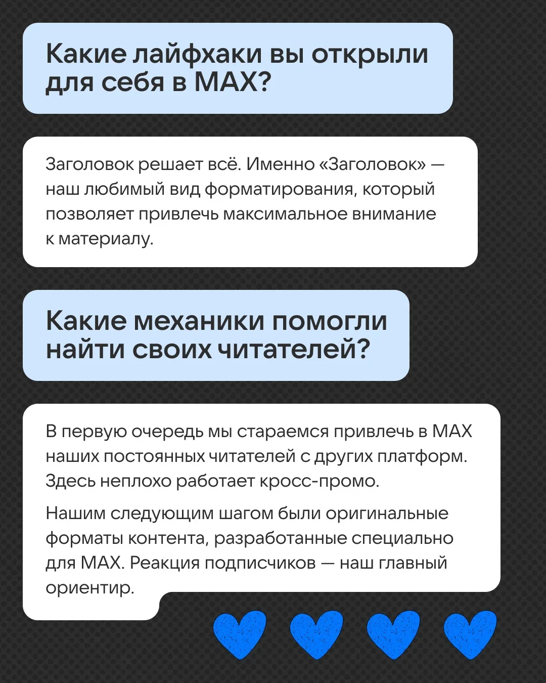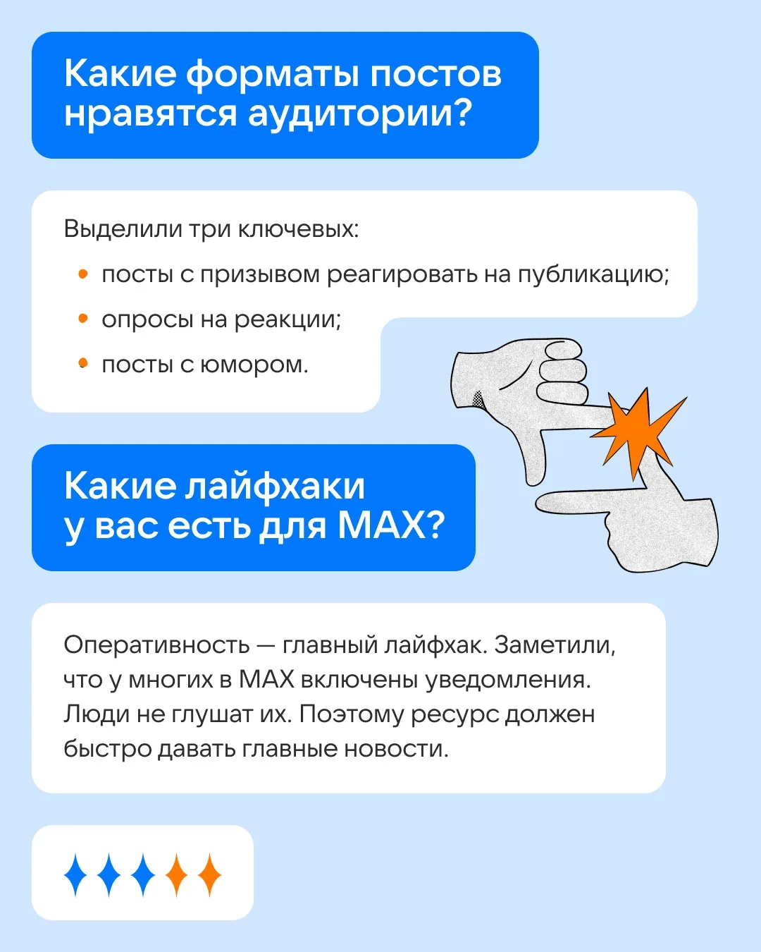 Планируем сделать этот формат постоянным: будем рассказывать, как медиа работают в MAX и что советуют коллегам. Не переключайтесь 😉