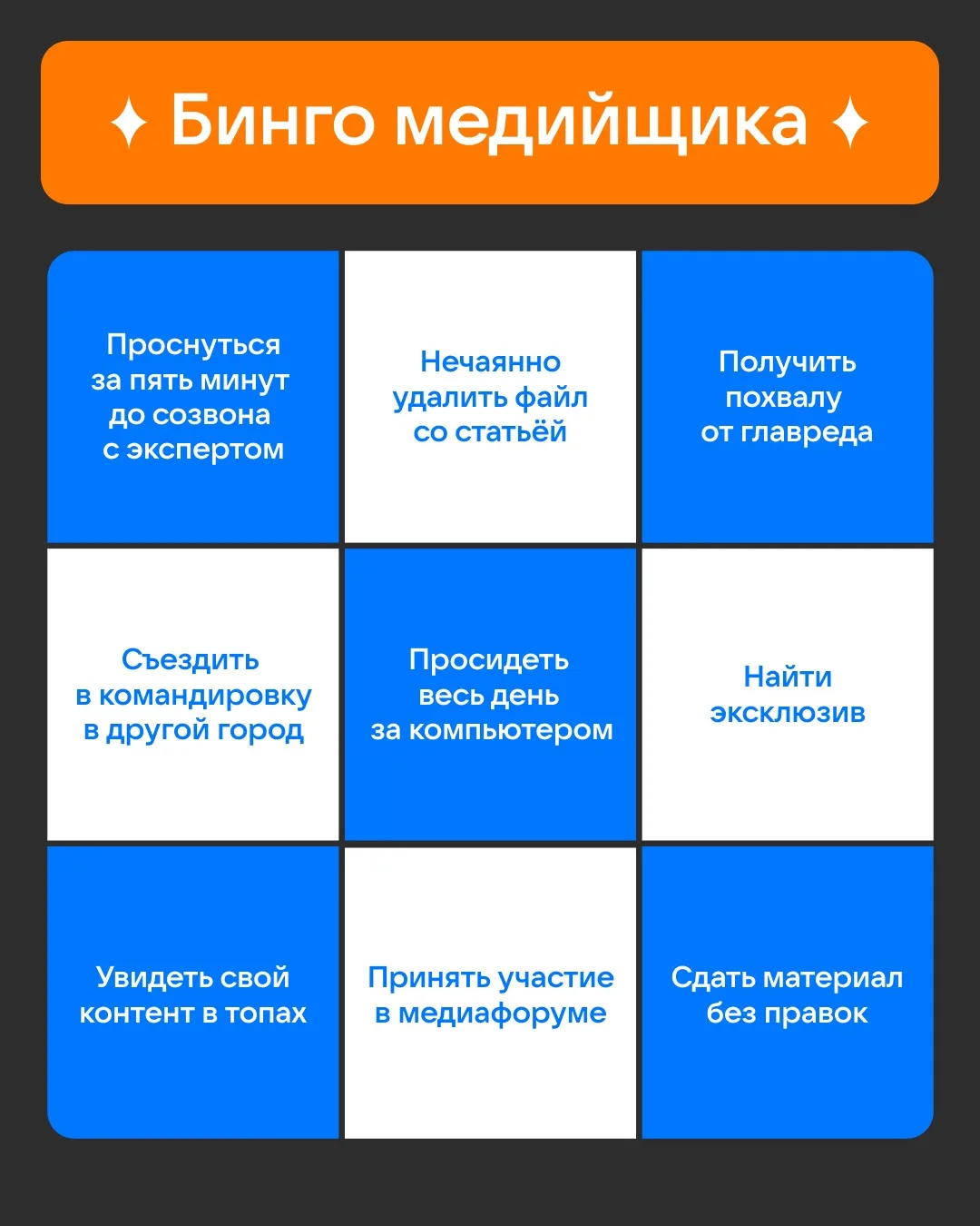 Сделали бинго для медийщиков: в нём ситуации, с которыми сталкивался каждый. Ну, или почти каждый 😁