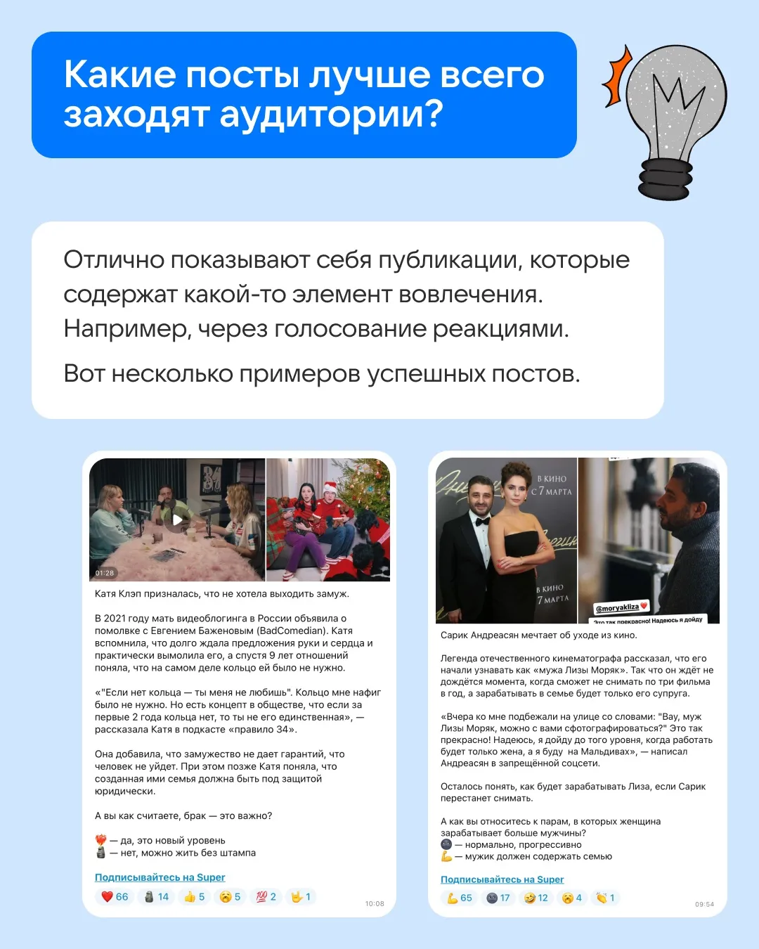 Поговорили с медиа, которое знает всё о жизни звёзд ✨ Head of SMM Super Полина Бушуева рассказала, как они выстраивают работу в MAX. Обсудили форматы, аудиторию и лайфхаки. Всё самое интересное — в карточках.